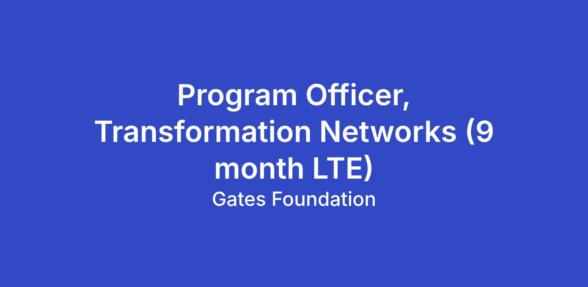 Program Officer, Transformation Networks (9 month LTE)