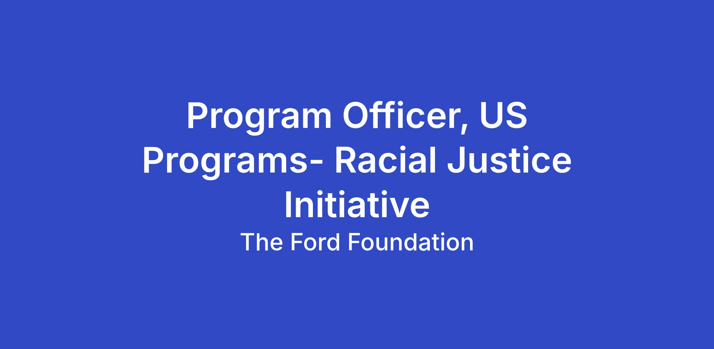 The Ford Foundation’s US Programs seek a fixed-term Program Officer to coordinate the Racial Justice Initiative. Now in its fourth year, the five-year Racial Justice Initiative is a cross-program grantmaking and learning initiative that aims to address the crisis of rapidly accelerating regression on racial justice. This initiative aims to advance racial justice and equity through support of efforts to 1) defend against rollbacks to racial equity programs and civil rights protections using policy, legal, communications and narrative approaches, and 2) foster cross-identity solidarity, community building, and belonging in the furtherance of racial justice.