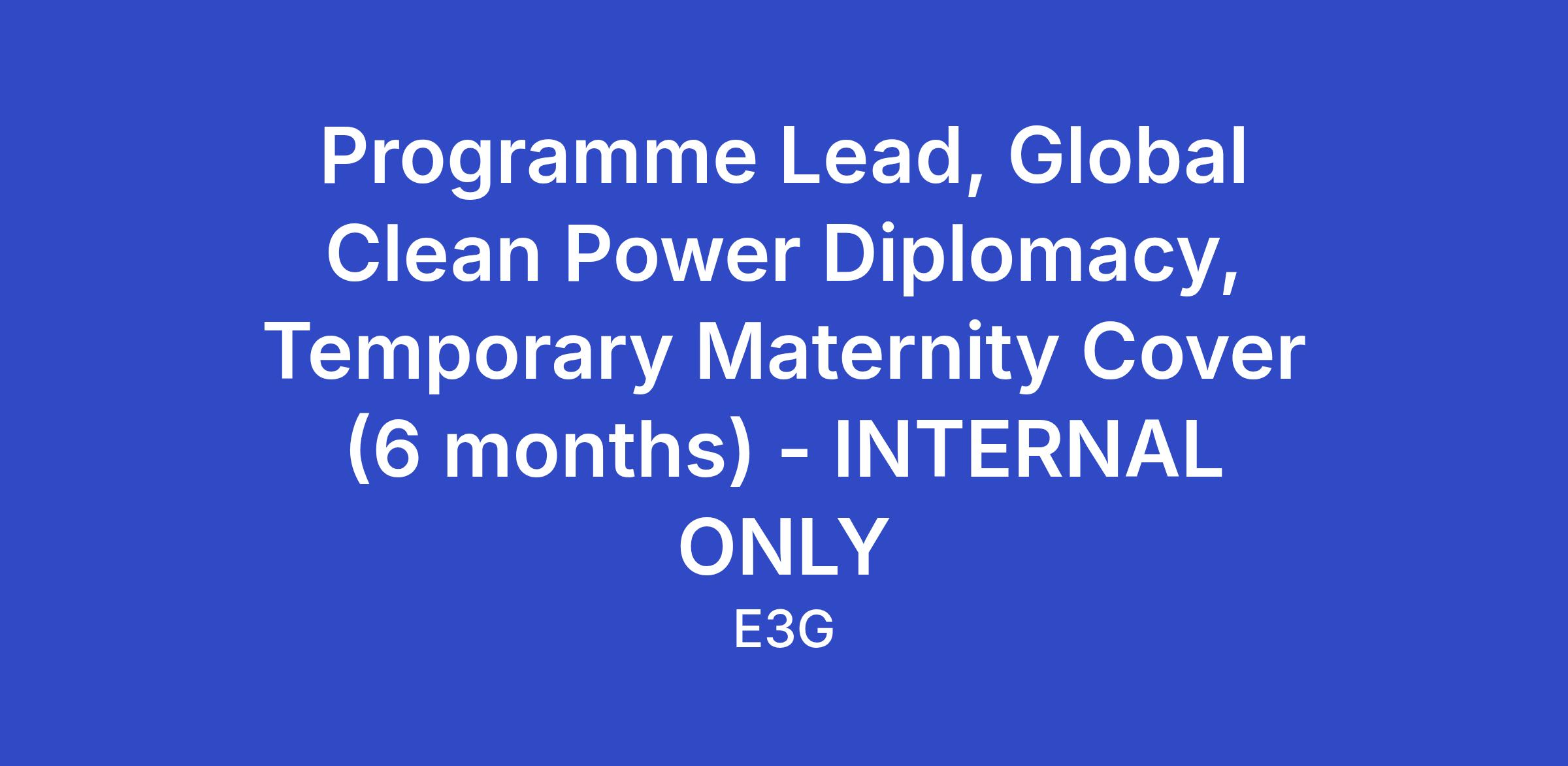 PROGRAMME LEAD, Global Clean Power Diplomacy, Temporary Maternity Cover (6 months) - INTERNAL ONLY