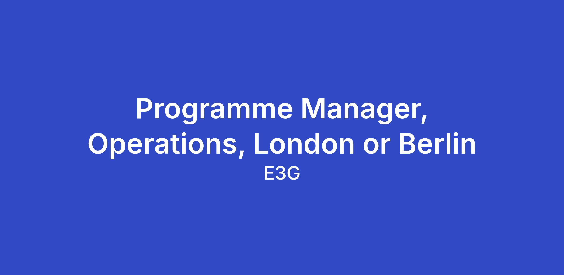 E3G is seeking an experienced Programme Manager to join the Operations team during an exciting period of strategic transformation. The role will be based in one of our E3G offices in London or Berlin. The role will act as a trusted business partner to the programme teams, to ensure alignment between strategic objectives of the organisation and the deliverables and outcomes of grants. and resource management. You will lead cross-functional initiatives, coordinate teams and resourcing and shape the execution of programmes that actively shape the policy and politics of climate change. If you thrive in a fast-paced, impact driven environment and seek an area for business opportunity and growth, this is the role for you.