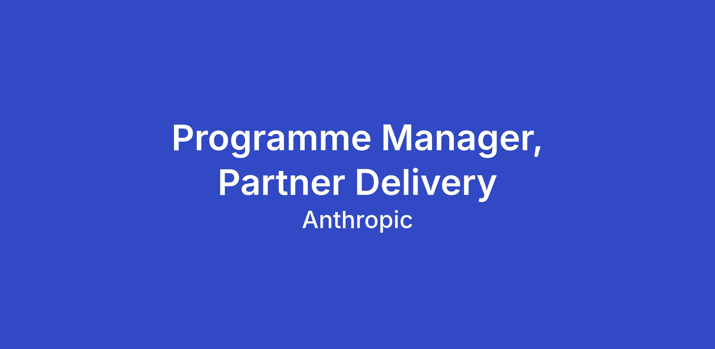 As Programme Manager, Partner Delivery on Anthropic's Global Partnerships & Business Development team, you'll build and run a partner-delivered package programme from scratch. You'll turn customer needs into productised offerings that partners sell and deliver — starting with Activations — and own the programme end-to-end, from partner recruitment through delivery outcomes.