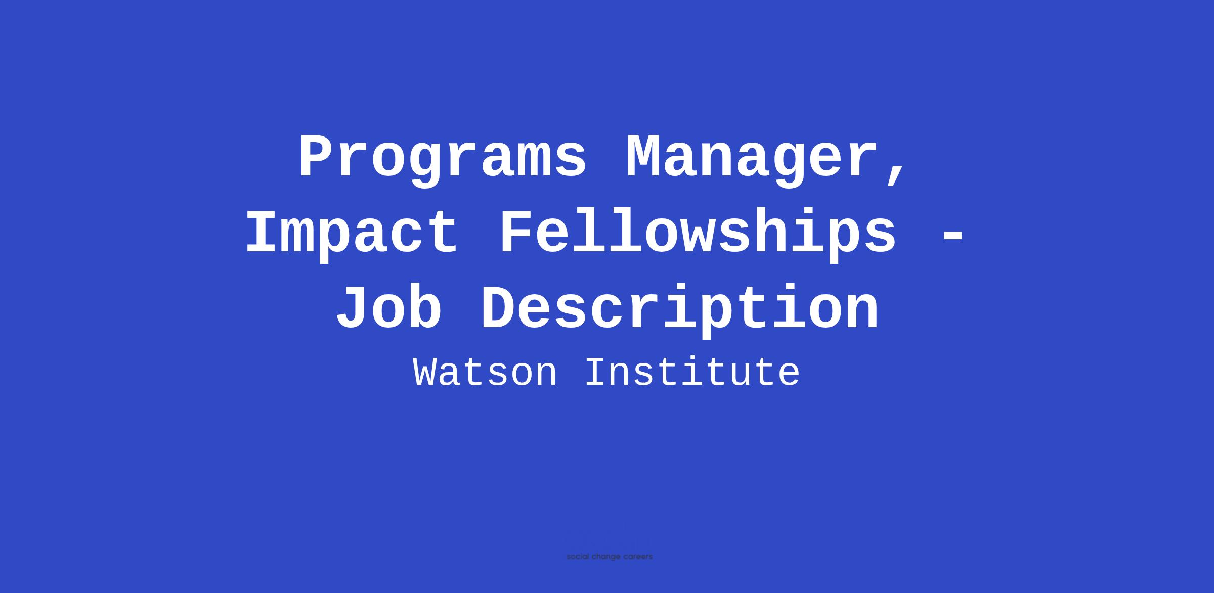- Experience as an entrepreneurial leader throughout their lives. The Programs Manager work will be in close tandem with the Watson Institute Fellows, each of whom are entrepreneurs, therefore they need to understand the Fellows trajectories and challenges.