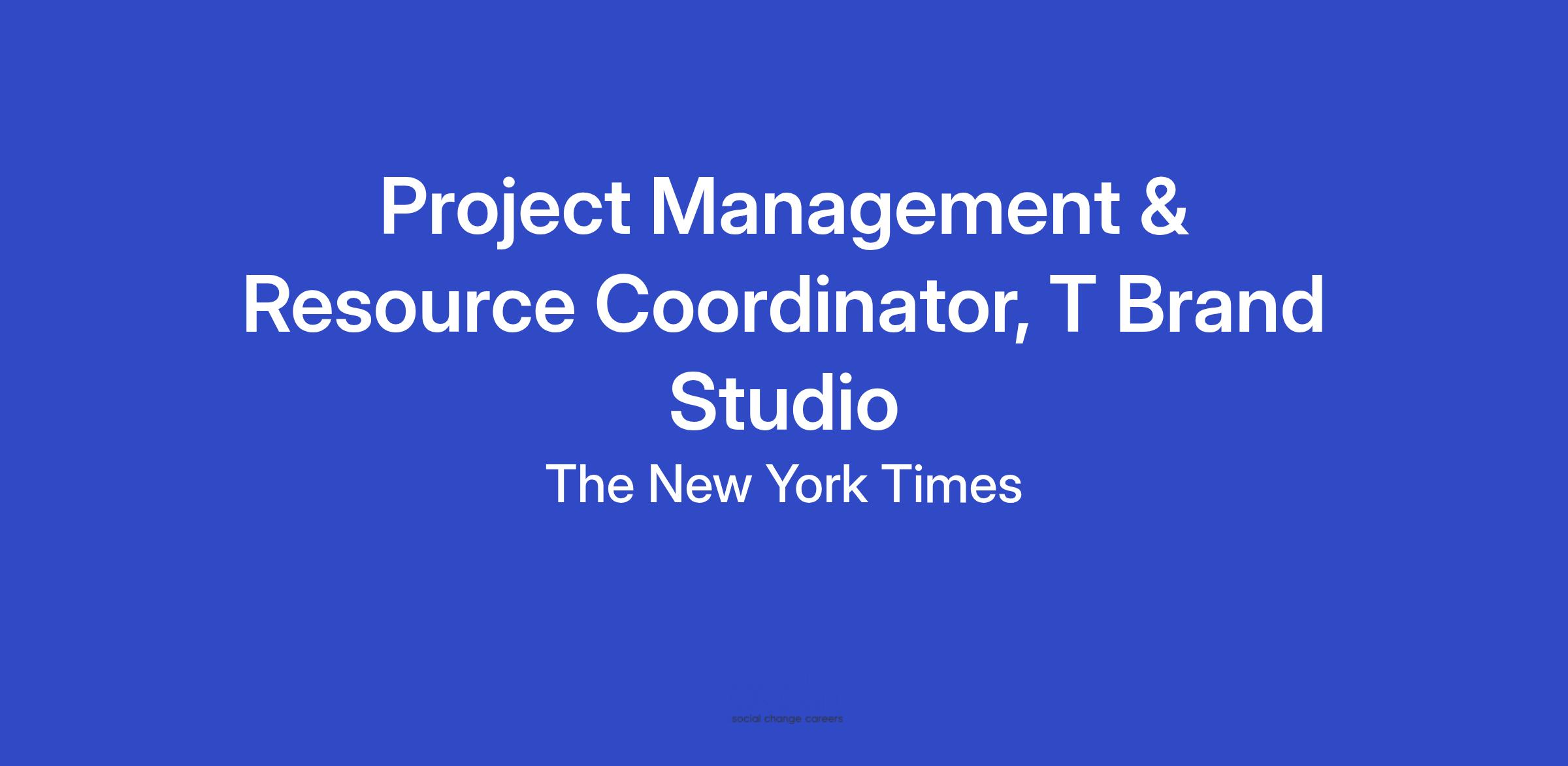 We have an exciting opportunity in The New York Times Advertising Department for a London-based Project & Resource Coordinator to join the branded content team, T Brand Studio.