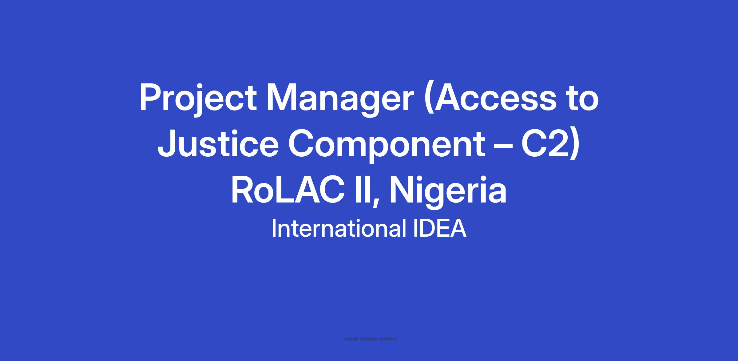 The Project Manager, Access to Justice Component is responsible for managing and coordinating the successful implementation of all Access to Justice project activities under Component Two (C2) of the RoLAC II Programme at both federal and state levels, to achieve the following expected outcome: Improved access to justice for vulnerable women, children, juveniles, persons with disabilities and victims of sexual and gender-based violence.