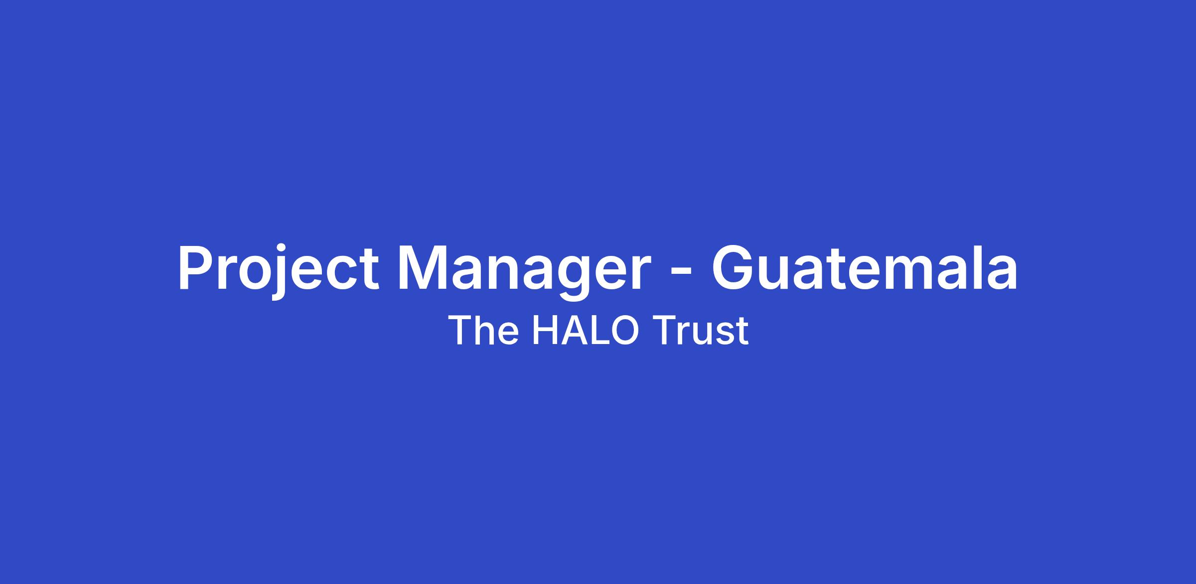 HALO is seeking to recruit a Weapons and Ammunition Management Project Manager (WAM PjM) who will oversee and manage the Guatemala project’s activities. They must have proven experience in project management, ideally including within high security environments. The WAM PjM is responsible for day-to-day management and delivery of project outputs and is the main focal point for external stakeholder engagement. They must ensure that contractual obligations are met and that project activities are conducted in the safest and most efficient manner possible, particularly in accordance with international standards, HALO’s SOPs, regulations and policies, as well as Guatemalan laws.