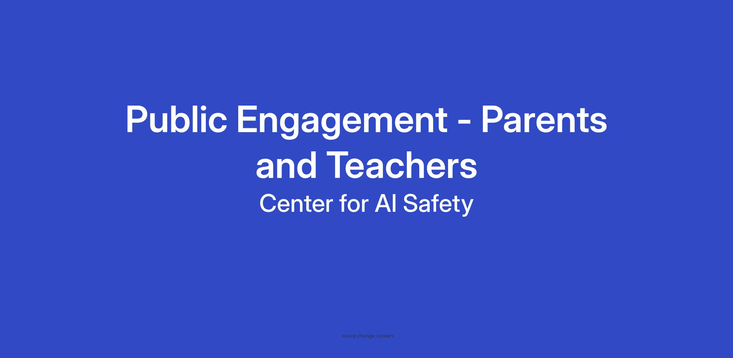 Parents and Teachers are a constituency particularly concerned about the risks from AI at the moment. We are looking for someone to lead our public engagement efforts to parents and teachers. Our hope is to educate and inform this important constituency, increasing engagement around the extreme risks of AI across the country.
