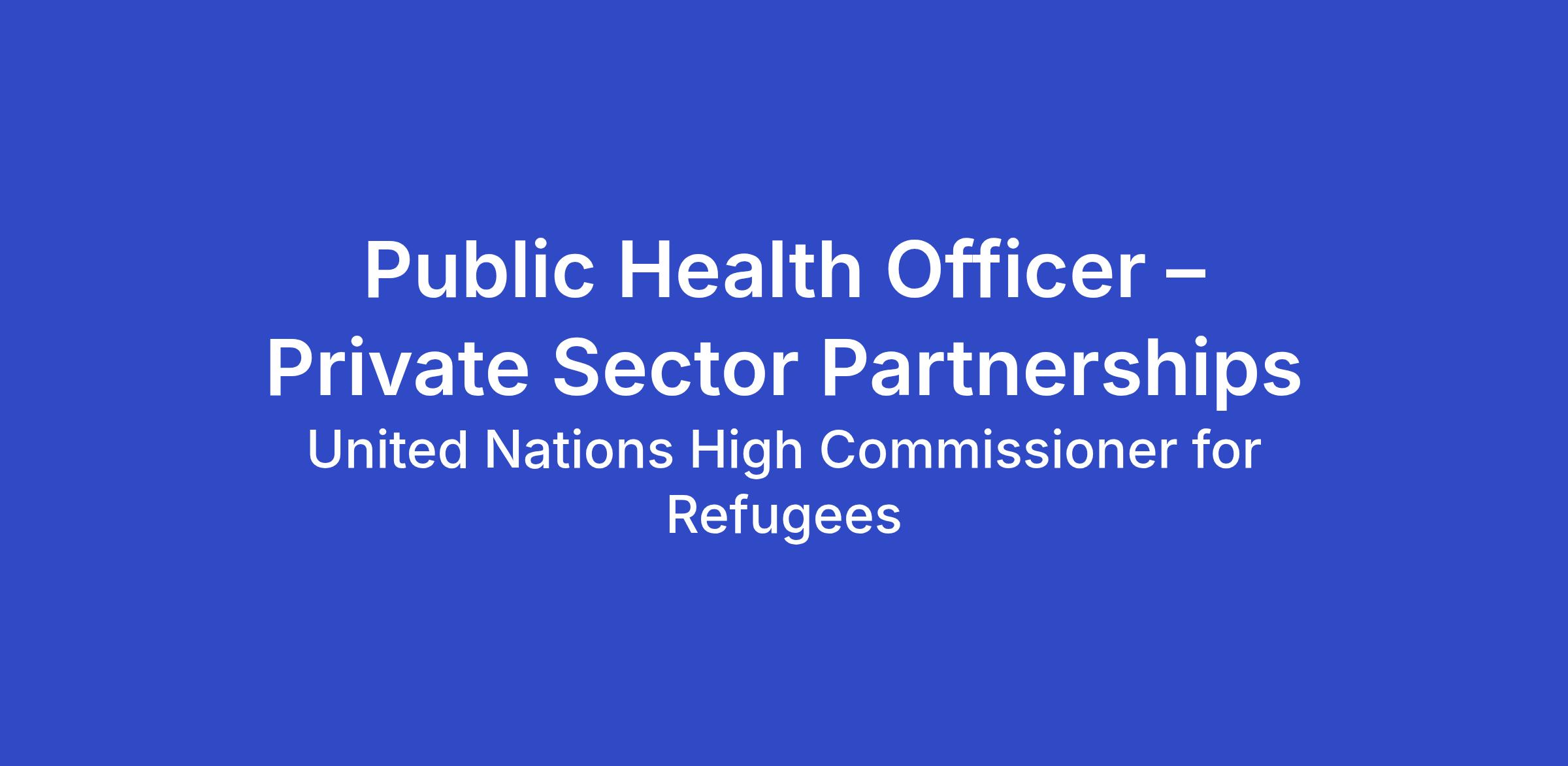 Title: Public Health Officer – Private Sector Partnerships