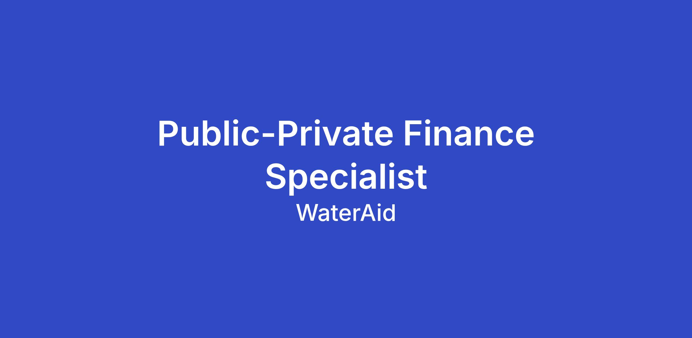 The Public and Private Finance Specialist will provide specialist technical leadership on WASH financing strategy, structuring and investor engagement within the National Water Compact Delivery Accelerator.