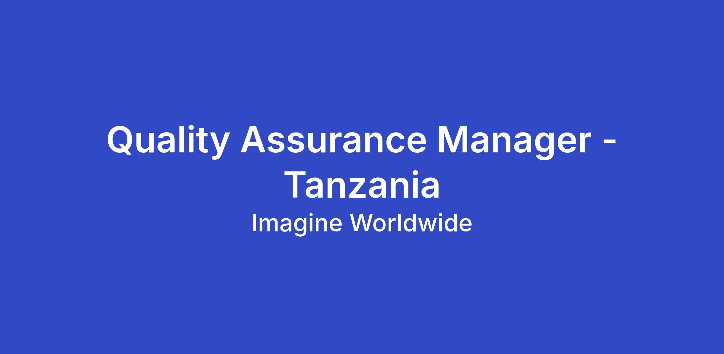 The Quality Assurance Manager must be based in Dar es Salaam, Tanzania, and will travel frequently within the country.