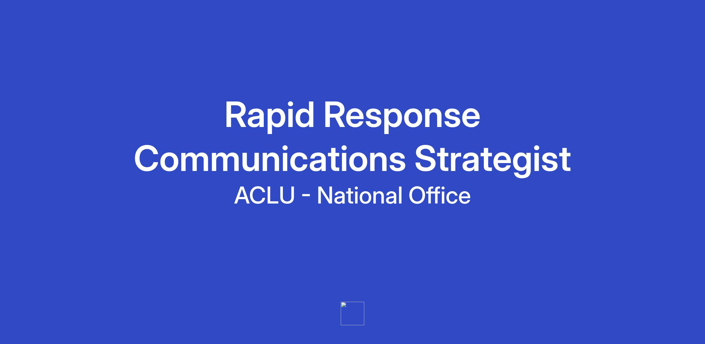 Reporting to the Director of Strategic Communications, the Rapid Response Communications Strategist will support the ACLU’s rapid response needs across issue areas, including immigration, abuse of power, national security, free speech and trans justice, among other issues. As issues surge and the ACLU takes action, from filing litigation to launching advocacy campaigns to organizing nationwide rallies, the rapid response strategist will work closely members of the communications and marketing team, as well as our affiliate, legal, policy, and advocacy colleagues to meet the moment with meaningful and high-impact communications. This individual will be a central player on our rapid response team, focusing on response work for the organization and across multiple issue areas.