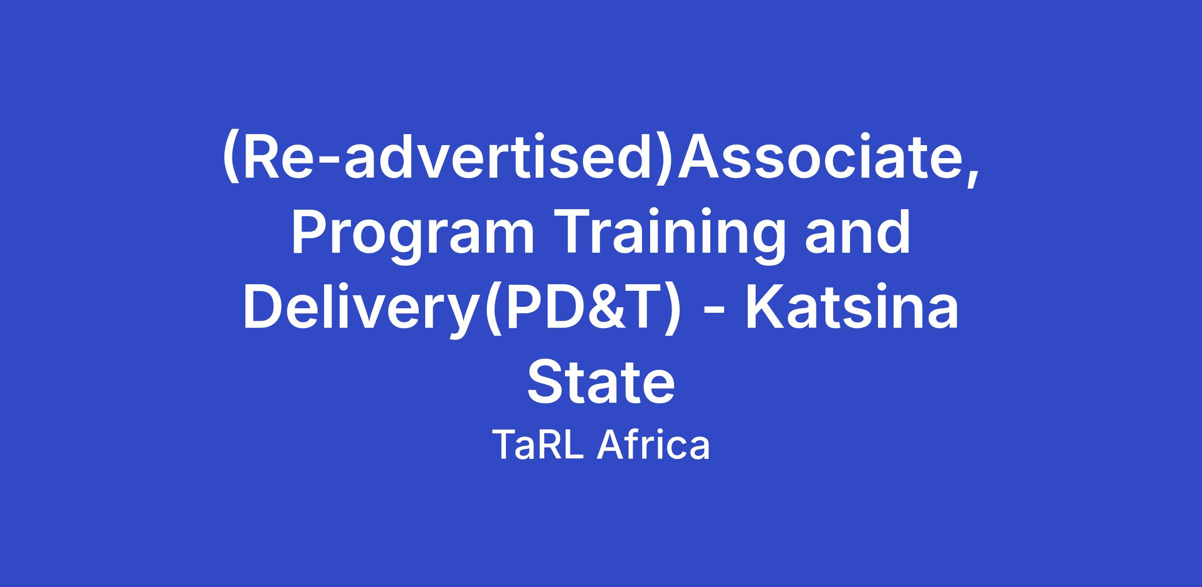 Position: Associate, Program Delivery and Training (PD&T) - Katsina State