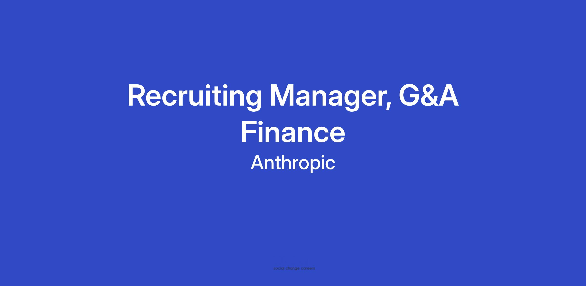 Anthropic is seeking an exceptional recruiting leader to build and scale our General & Administrative (G&A) recruiting function during a pivotal period of growth. As Recruiting Manager, G&A, you'll partner closely with senior leaders across Finance, Legal, People, and Operations to attract world-class talent that will help us safely scale AI systems that benefit humanity.