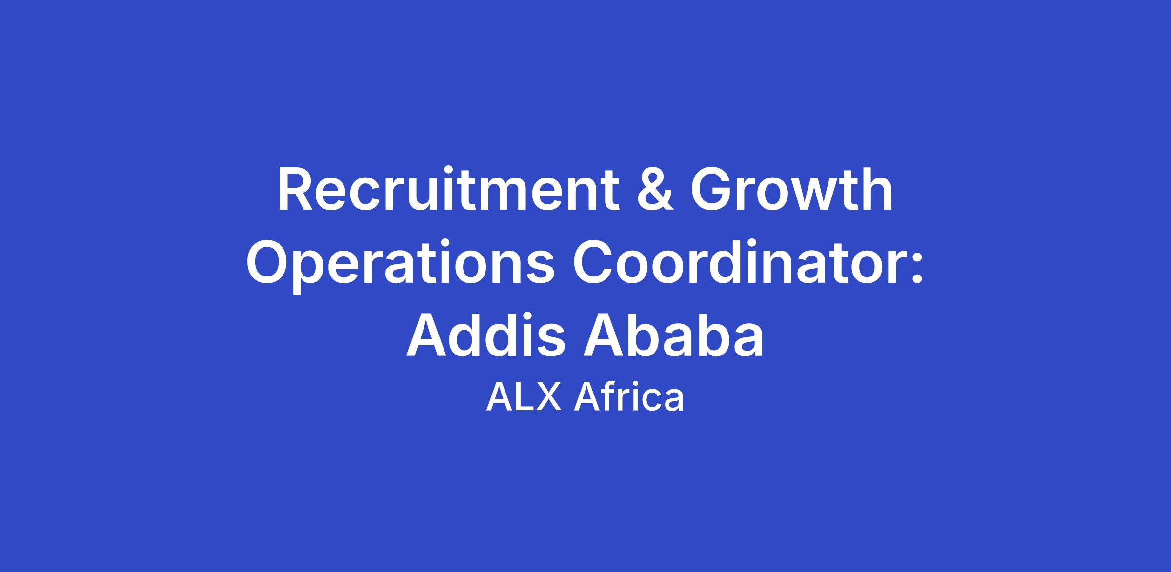Recruitment & Growth Operations Coordinator: Addis Ababa