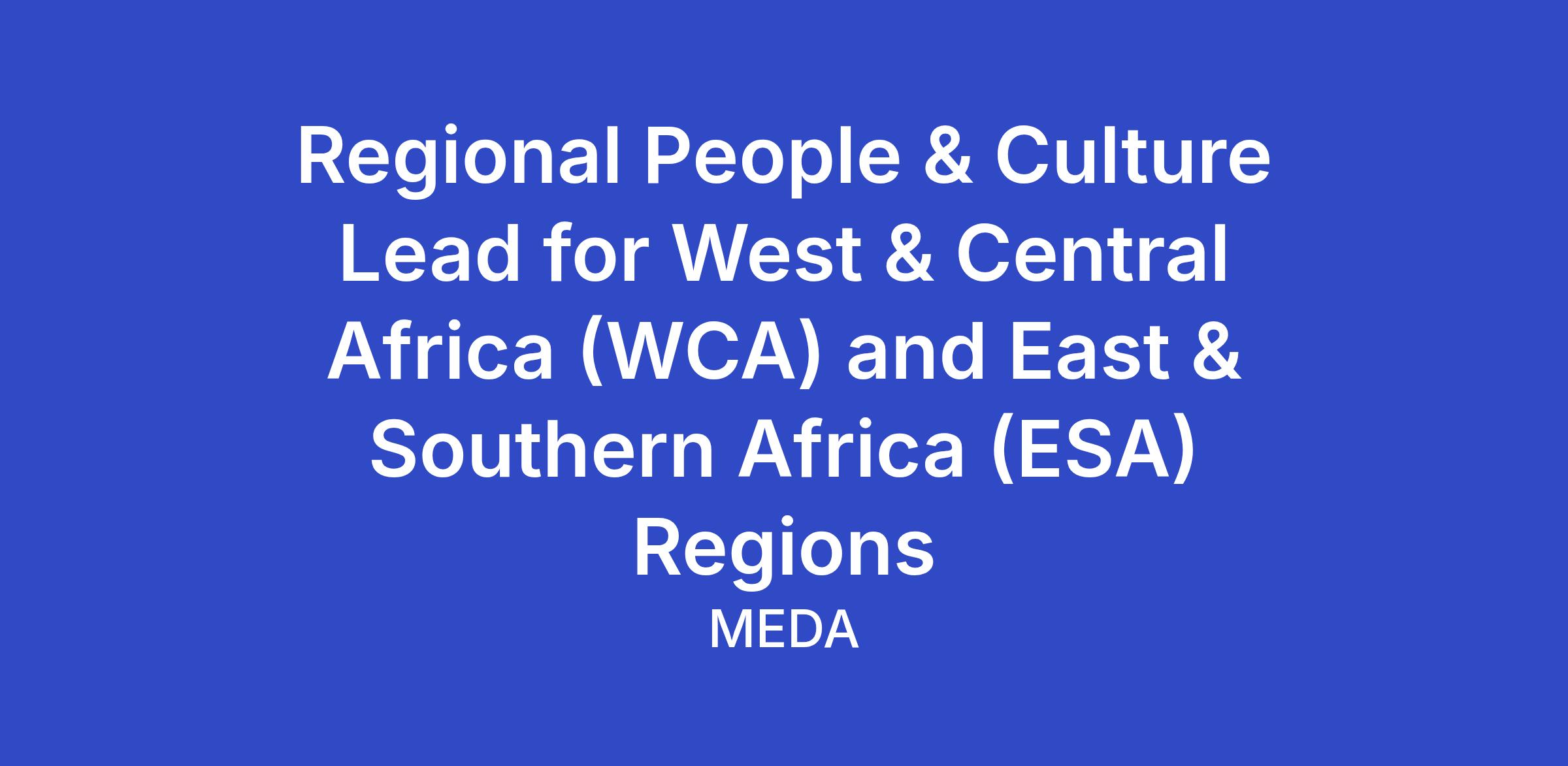 The Regional People & Culture Lead is a key leadership role as well as hands-on role that provides strategic and day to day HR advisory and technical support to the West & Central Africa (WCA) and East & Southern Africa (ESA) Regions.