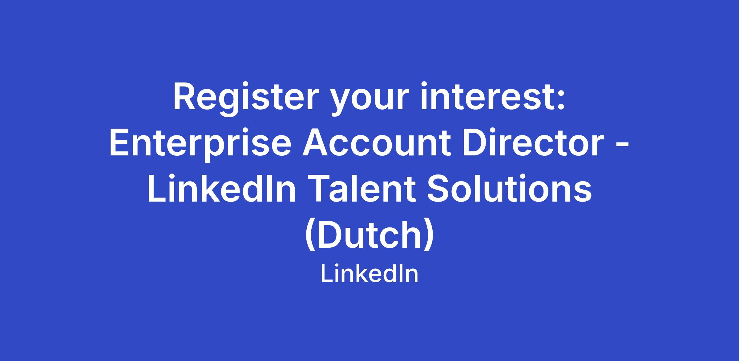 Register your interest: Enterprise Account Director - LinkedIn Talent Solutions (Dutch)
