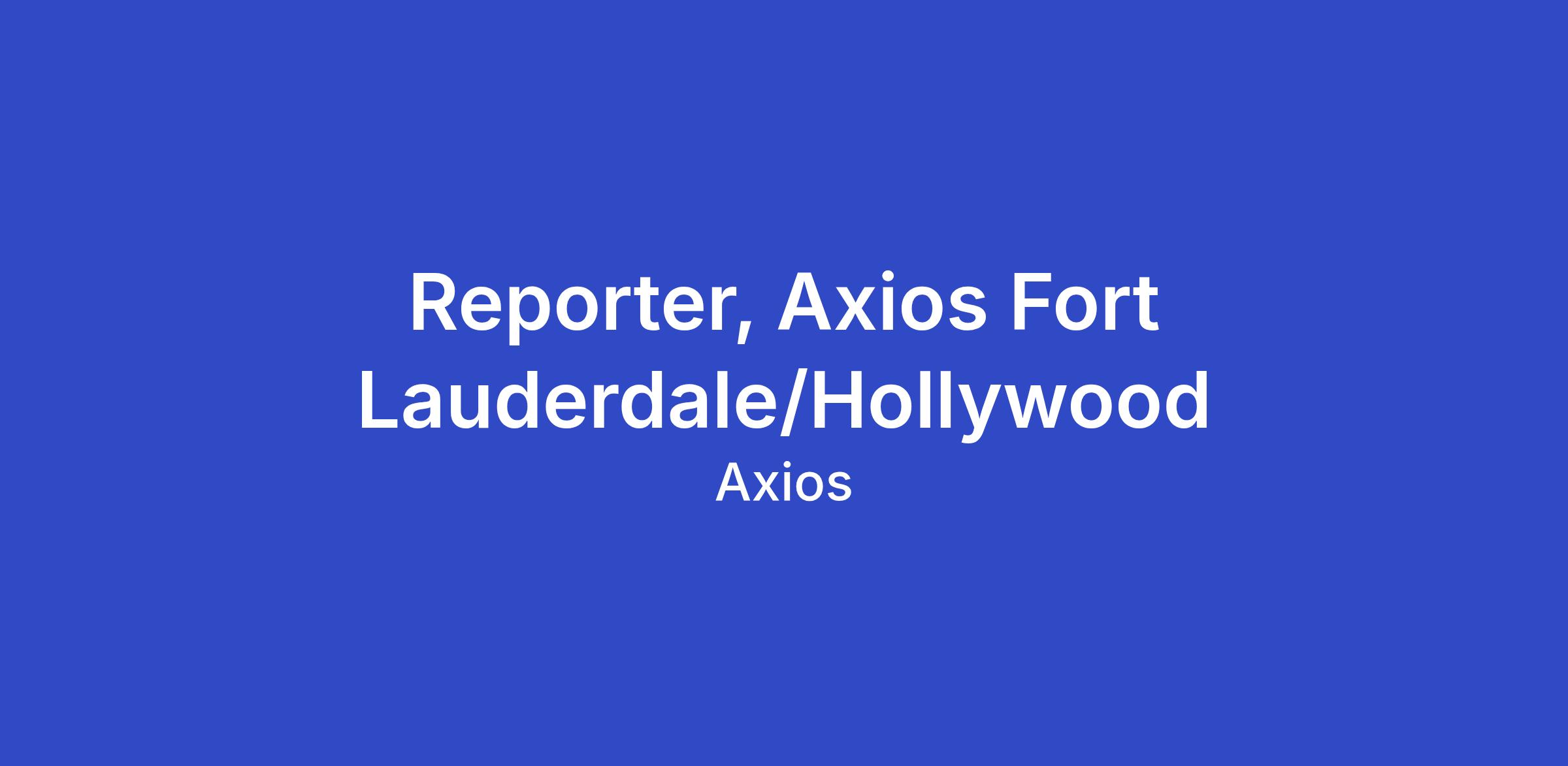 The big picture: Axios is a company dedicated to providing trustworthy, award-winning news content in an audience-first format. We are hiring a Reporter to cover Fort Lauderdale and Hollywood, Fla. as part of our growing local news initiative, which is extending our mission to America’s hometowns.