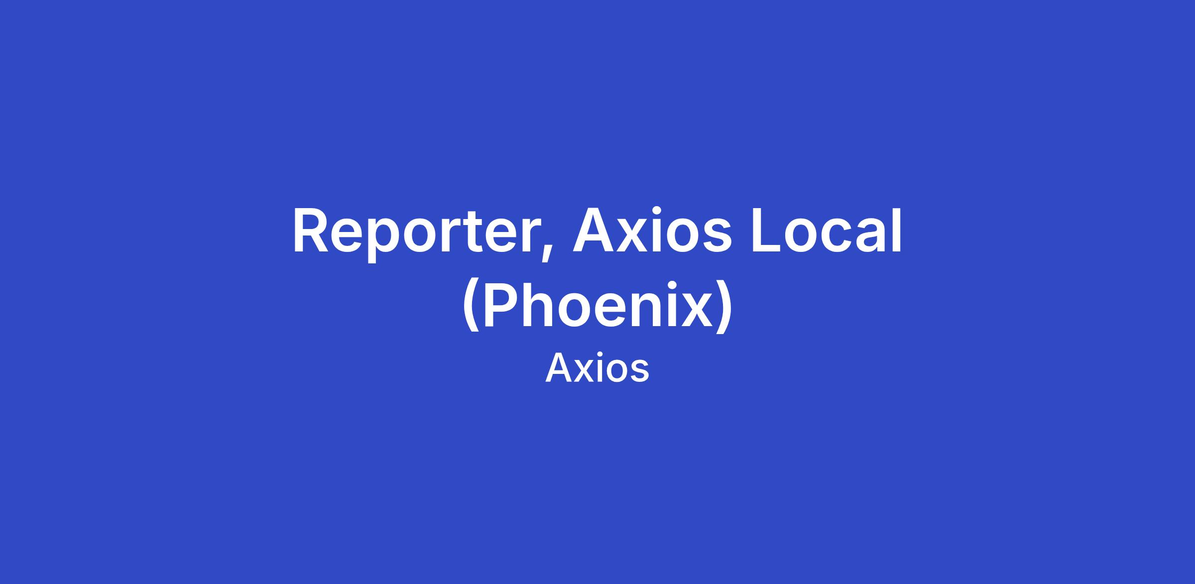 The big picture: Axios is a growth-stage company dedicated to providing trustworthy, essential news in a format that respects readers' time. We're hiring a reporter to cover Phoenix as part of our growing local news initiative.
