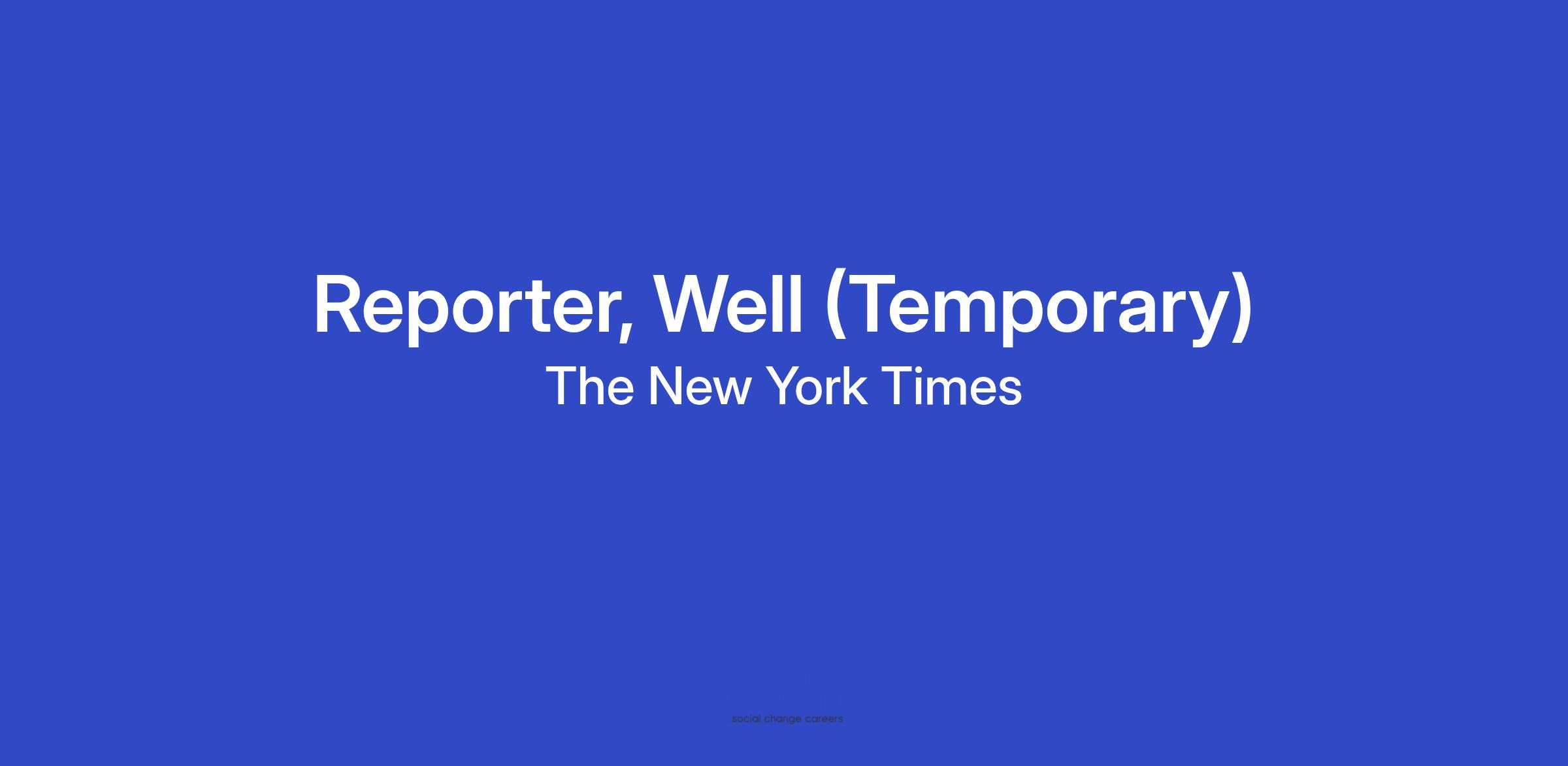 The New York Times Well desk offers evidence-based guidance on a range of topics including mental and physical health, family and relationships. We are looking for a seasoned reporter to cover nutrition and sleep.