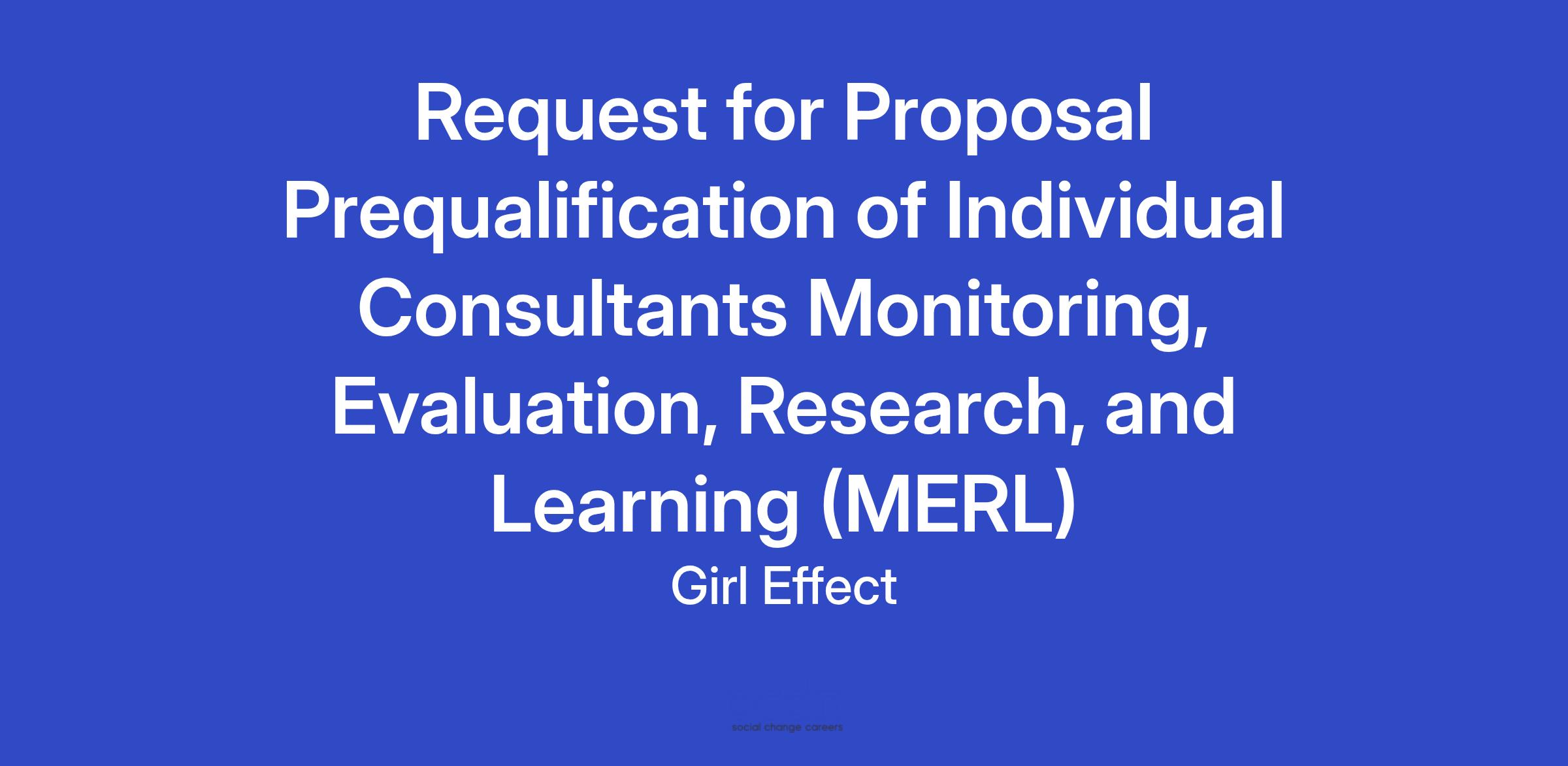 The purpose of this RFP is to identify and select a diverse pool of individual consultants with a proven track record of providing high-quality MERL services, capable of addressing the complex needs of our programs. By creating a pre-qualified roster, Girl Effect seeks to streamline the procurement process and engage consultants with the appropriate skills and experience when specific project opportunities arise.