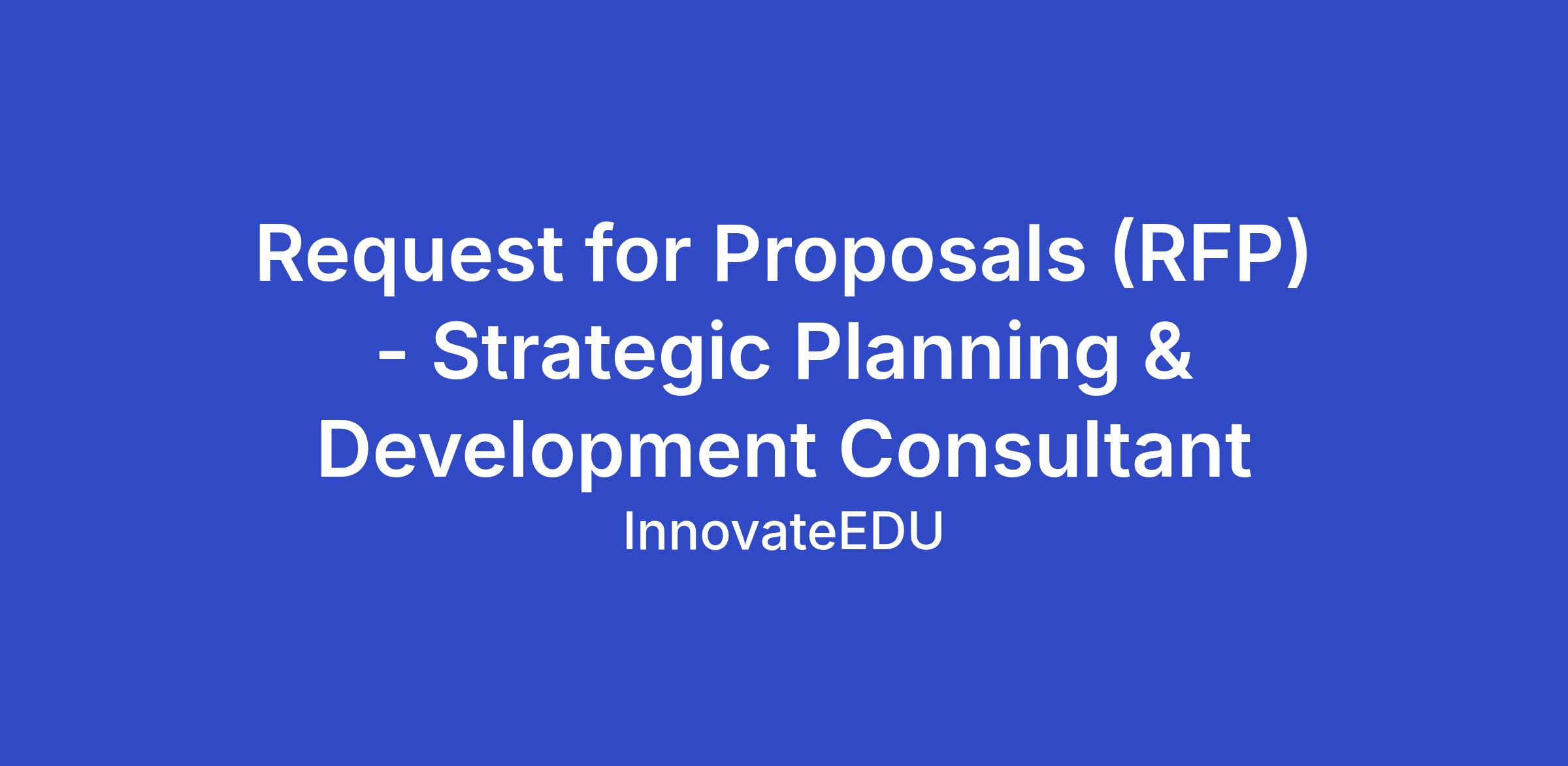 InnovateEDU invites qualified consultants or firms to submit proposals for a 3-month strategic planning process. The primary objective is to refine our strategic direction, ensure organizational alignment, and develop a robust fundraising strategy to support this work.