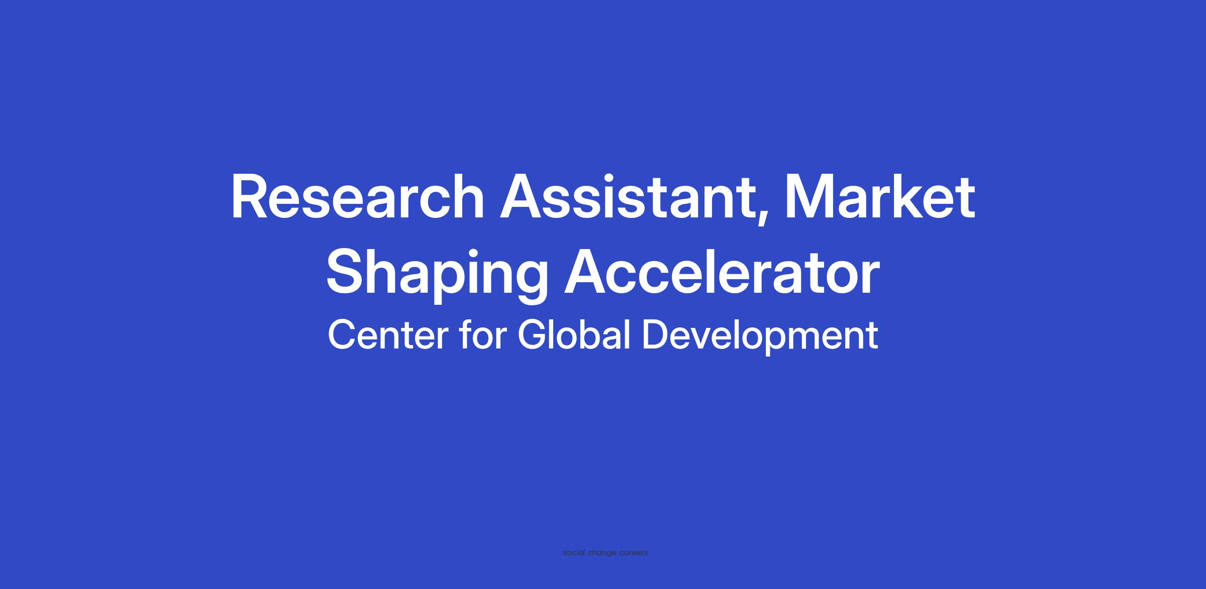 The Research Assistant, will work with Professor Christopher Snyder (Dartmouth) and Professor Rachel Glennerster (CGD President), and other colleagues at the Market Shaping Accelerator to support the development and adoption of high-impact, market shaping proposals that will incentivize innovations that address climate change, pandemic threats, global health issues, and other pressing global challenges.