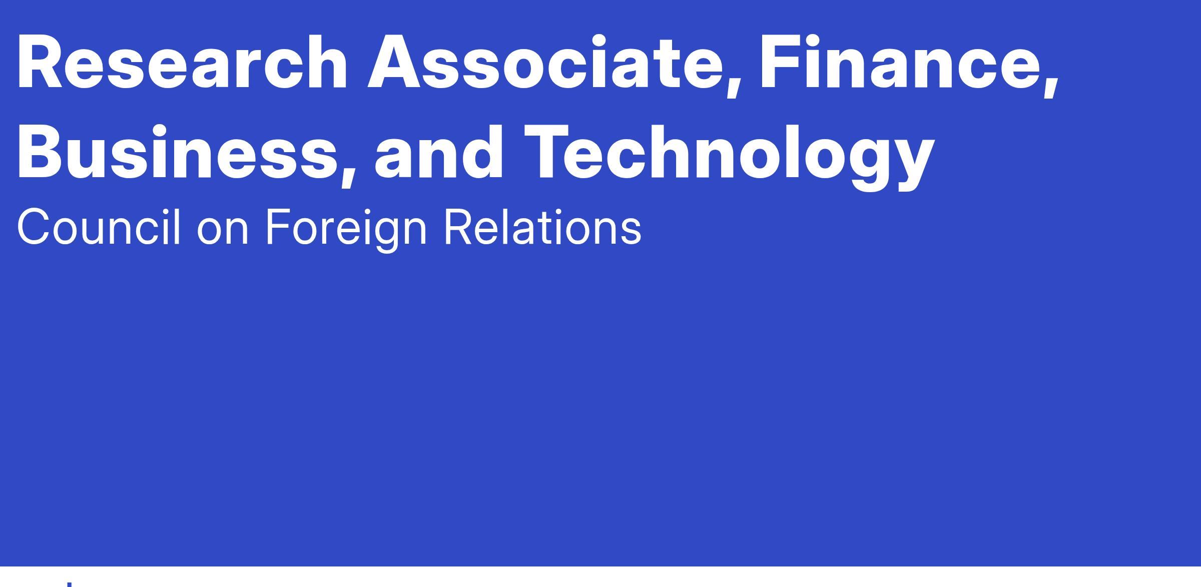 The Council on Foreign Relations is an equal opportunity employer and actively seeks candidates from a diverse background.