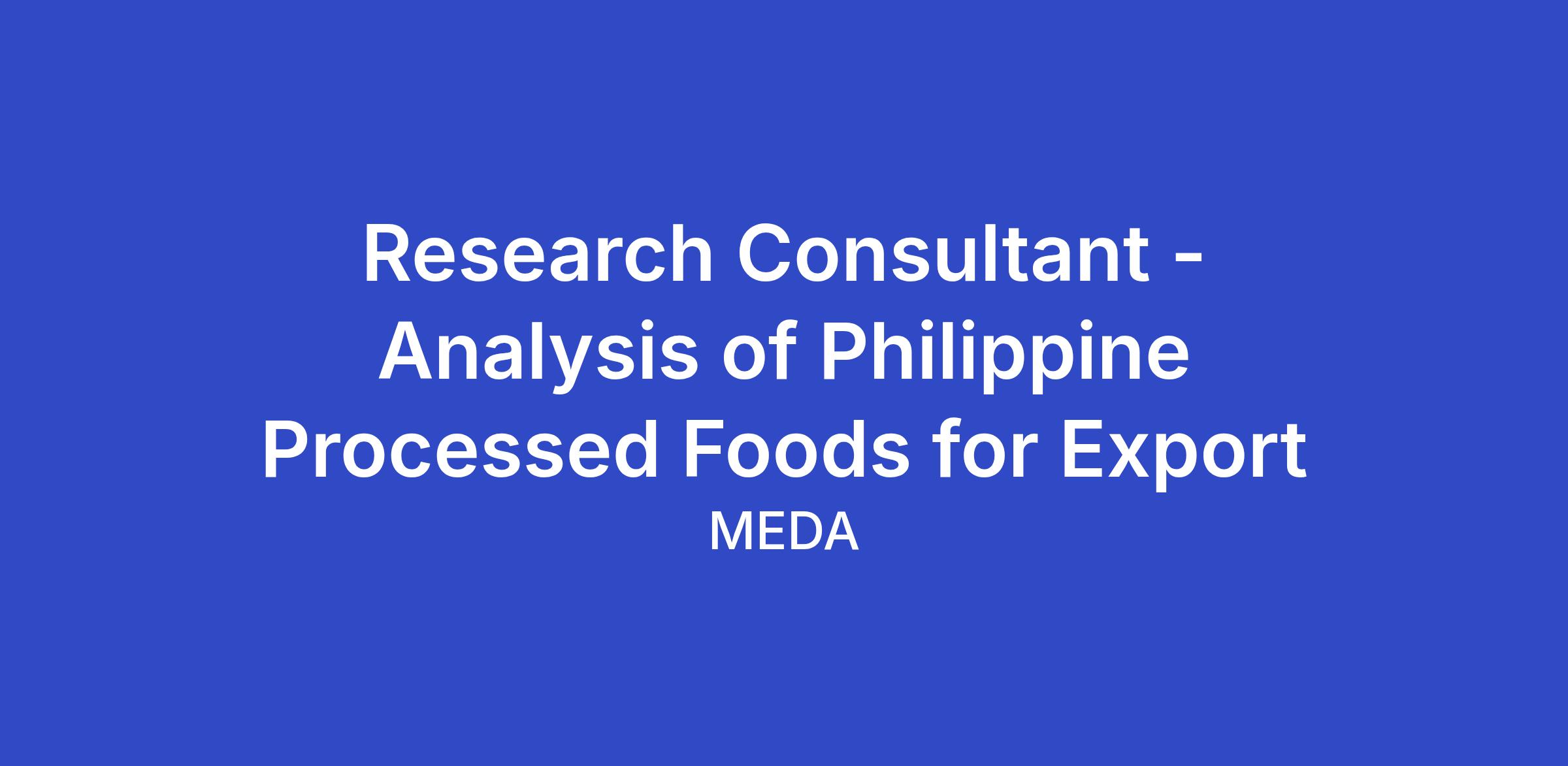 CALL FOR APPLICATIONS FOR RESEARCH CONSULTANT - Analysis of Philippine Processed Foods for Export