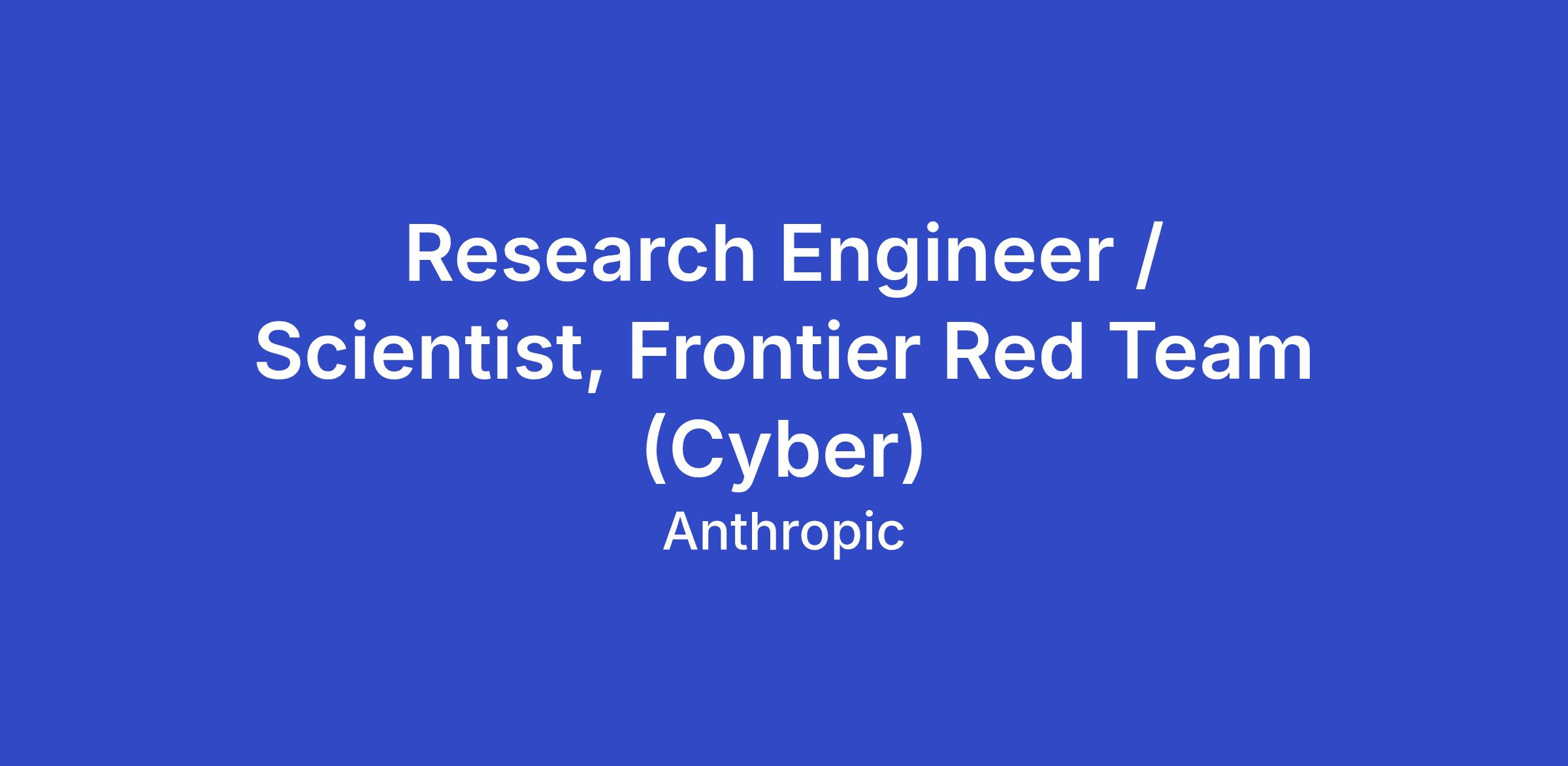 As a Research Scientist on FRT focusing on cyber, you'll build the tools and frameworks needed to defend the world against advanced AI-enabled cyber threats. Senior candidates will have the opportunity to shape and grow Anthropic's cyberdefense research program, working with Security, Safeguards, Policy, and other partner teams. This work sits at the intersection of AI capabilities research, cybersecurity, and policy—what we learn directly shapes how Anthropic and the world prepare for AI-enabled cyber threats.