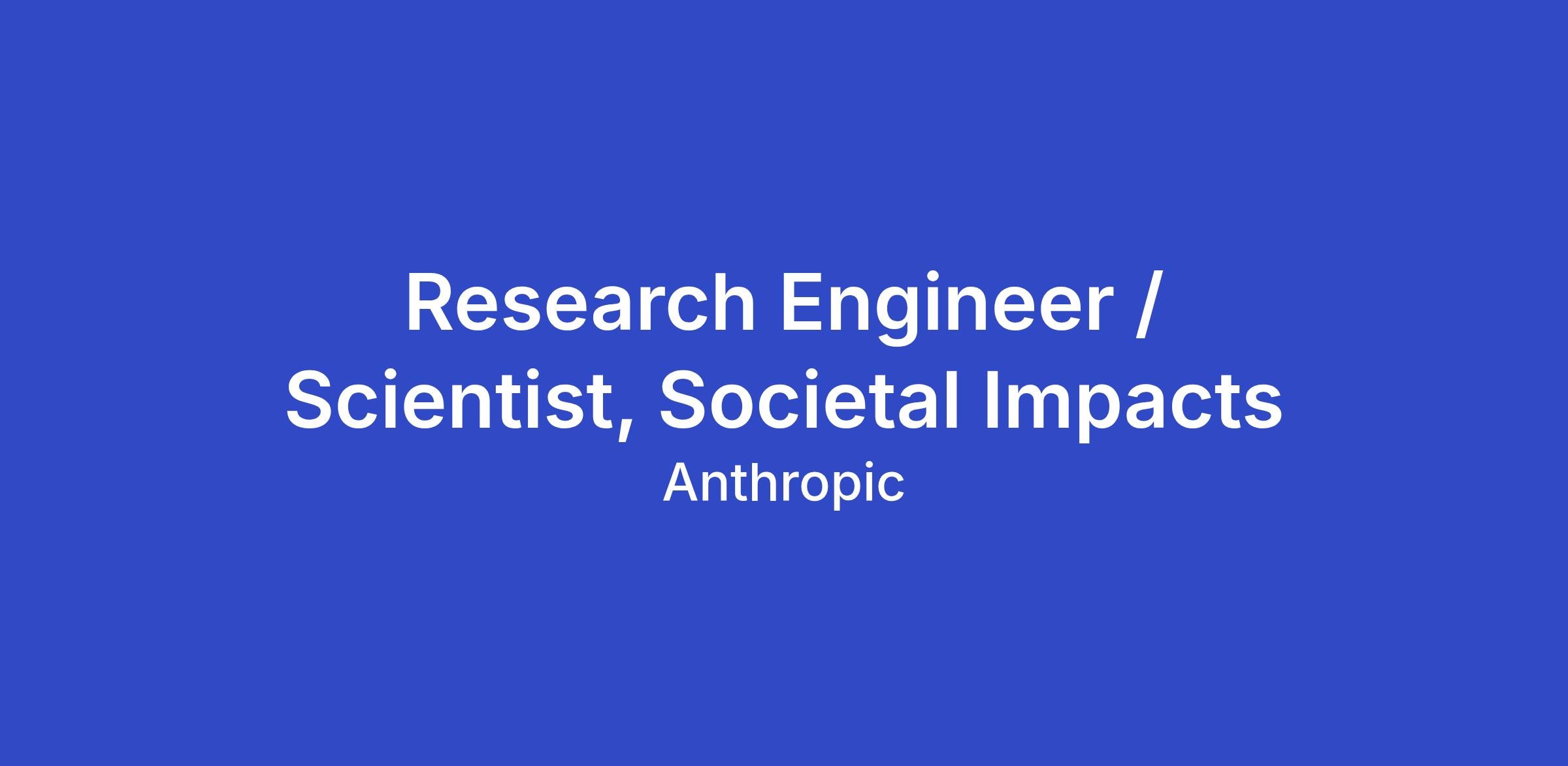 As a Research Engineer / Scientist on the Societal Impacts team, you'll design and build critical infrastructure that enables and accelerates foundational research into how our AI systems impact people and society. Your work will directly contribute to our research publications, policy campaigns, safety systems, and products.