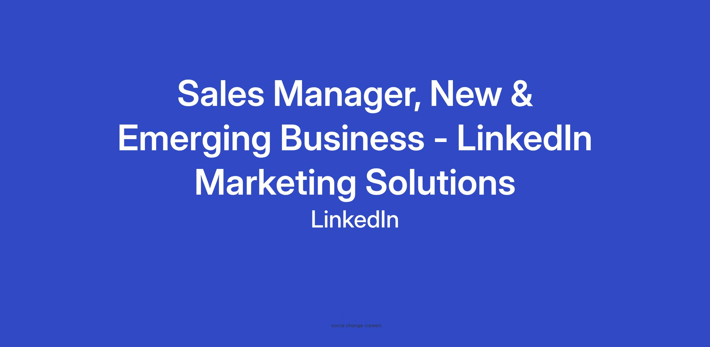 Searching for your dream job? At LinkedIn, we strive to help our employees find passion and purpose. Join us in changing the way the world works. We’re much more than a digital resume – we transform lives through innovative products and technology. We are looking for a Sales Leader to join our global LinkedIn Marketing Solutions team as a Manager within the Online Sales Organization (OSO)’s New & Emerging Business team. OSO is a fast-paced, innovative team that is transforming how advertisers connect and build relationships with their customers.