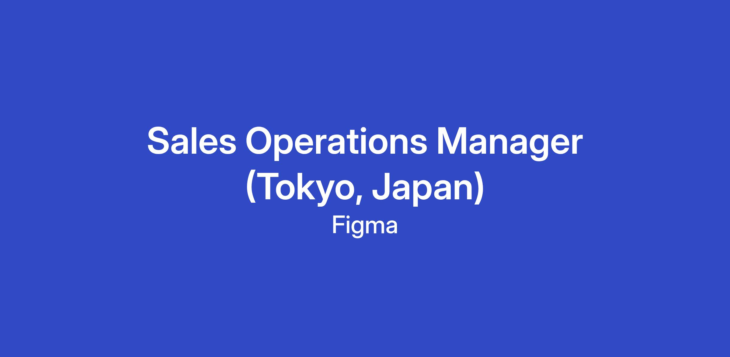 We are seeking an experienced Sales Operations Manager to partner with our Japan Sales team across all subregions and segments. In this role, you will serve as a business partner on the Regional Sales Operations team, playing a critical role in helping Figma Sales scale revenue across both our self-service and assisted sales motions.