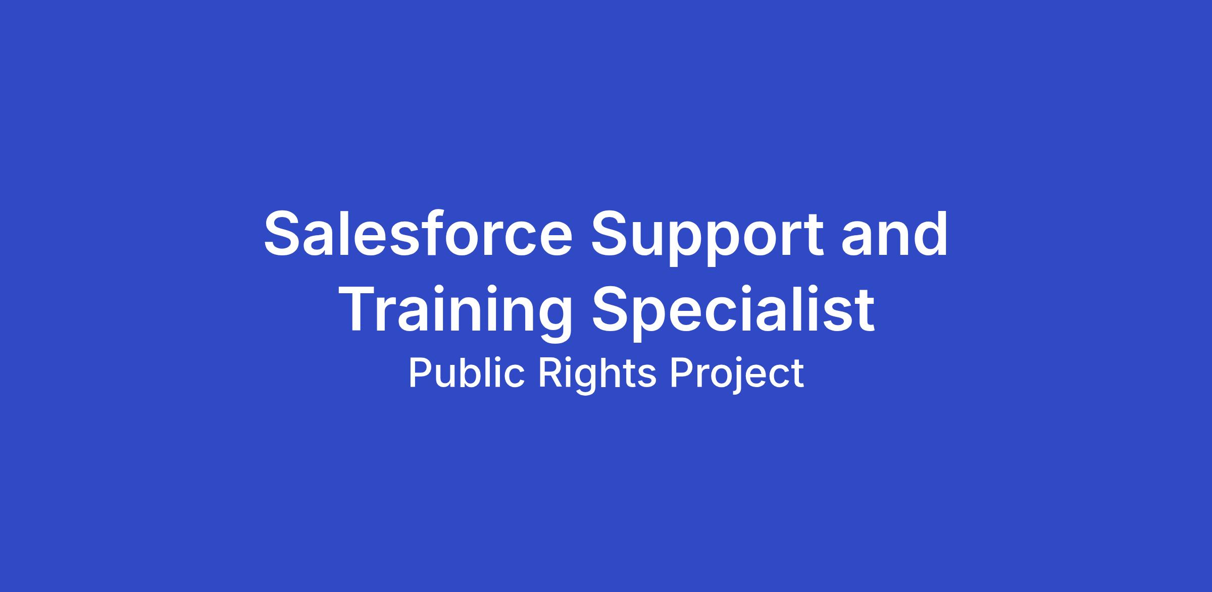 Public Rights Project seeks a Salesforce Support and Training Specialist to join our growing Salesforce Team. This is a full-time, remote, exempt position.