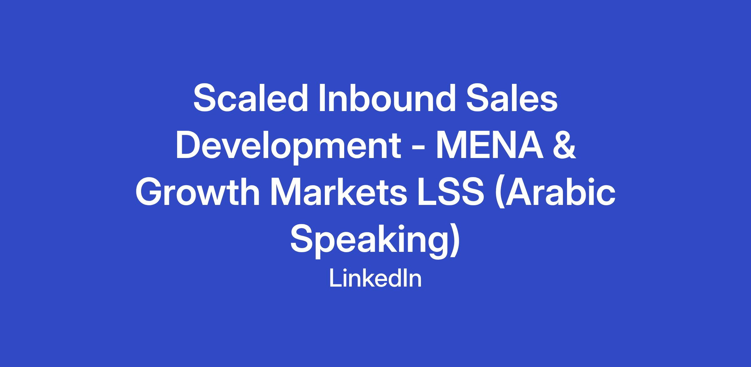 Scaled Inbound Sales Development - MENA & Growth Markets LSS (Arabic Speaking)