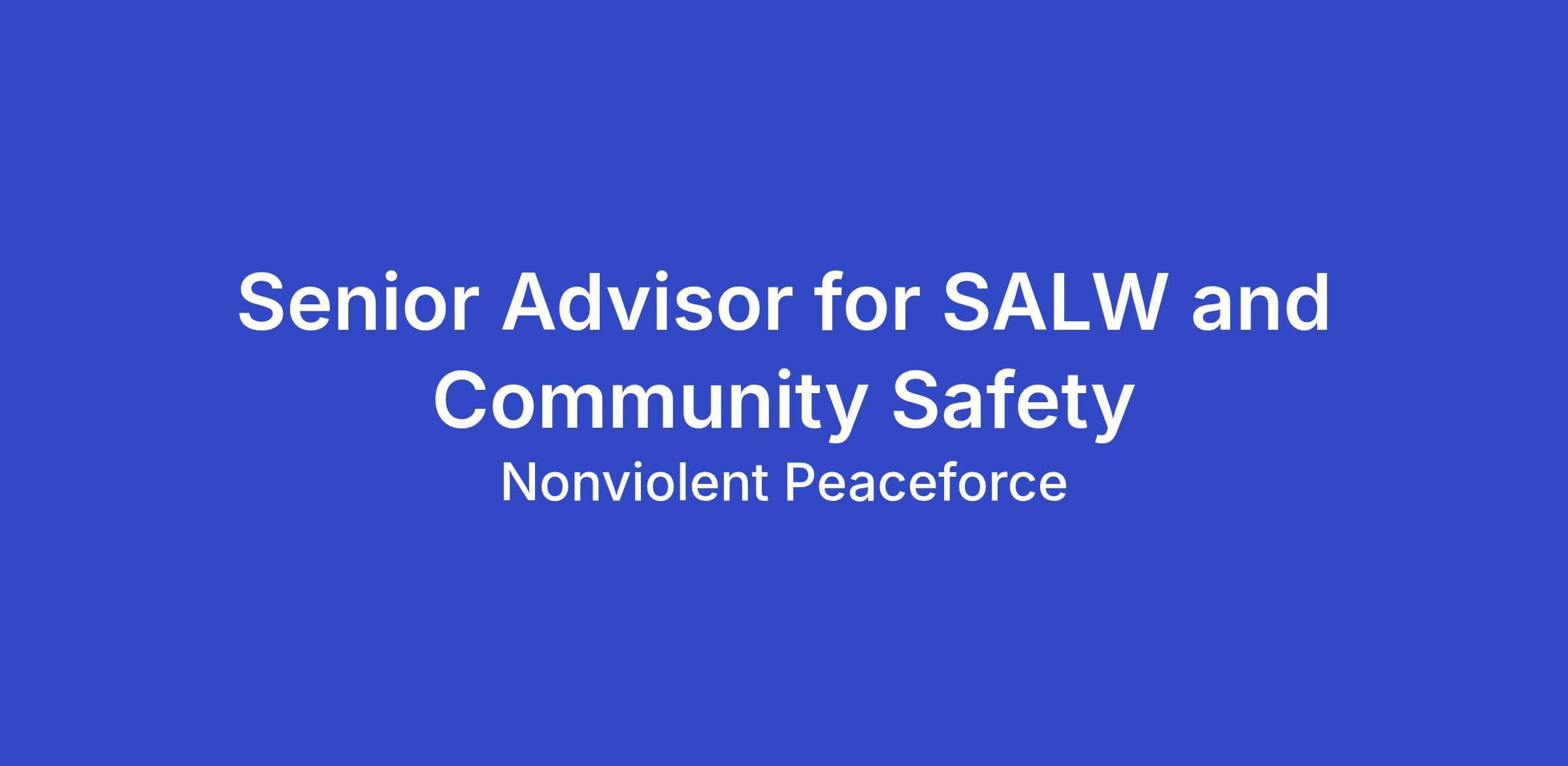 Terms and Reference for SENIOR ADVISOR FOR SALW AND COMMUNITY SAFETY