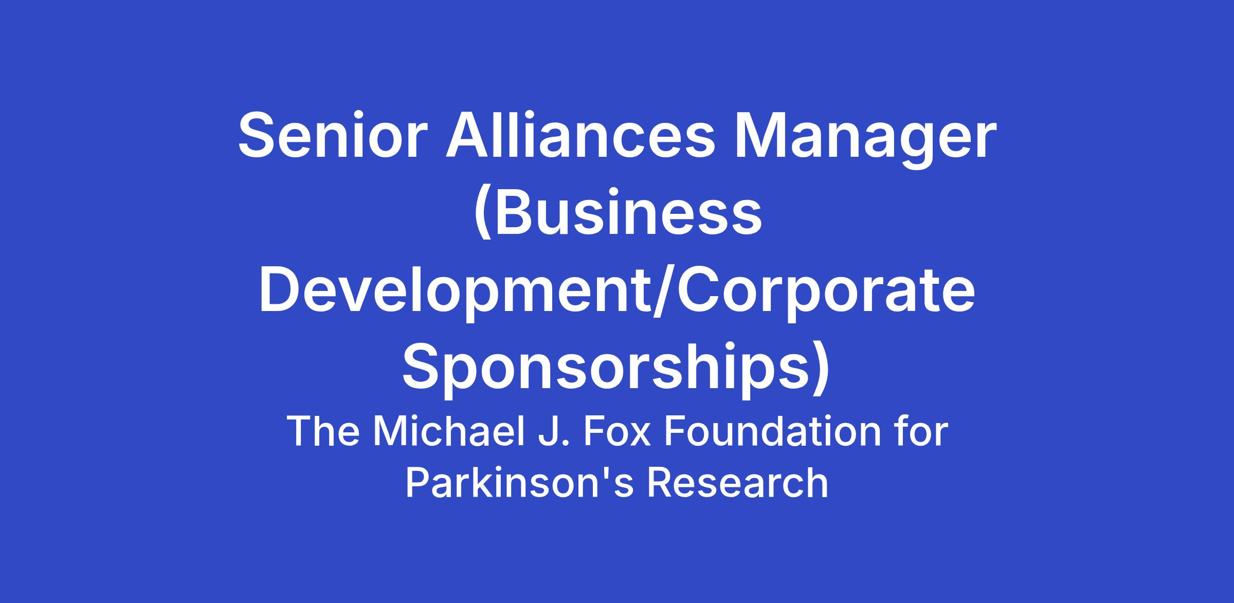 The Michael J. Fox Foundation for Parkinson’s Research (“the Foundation”) is seeking top talent for its Senior Alliances Manager position. Reporting to the Director of Research Alliances, this role cultivates partnerships and develops programs designed to increase the Foundation’s engagement with new and existing partners. This role collaborates cross-functionally with diverse internal colleagues, members of the scientific community, and government, non-profit, and industry sectors. The position provides opportunities to develop and manage partnership programs with a focus on aligning novel projects with the Foundation’s mission and inserting strategic business input and oversight. This role will have frequent, direct interactions with senior leadership across the organization and leading health and wellness companies globally. The ideal candidate should have proven business development experience in creating long-term strategic growth opportunities resulting in sustainable corporate partnerships.