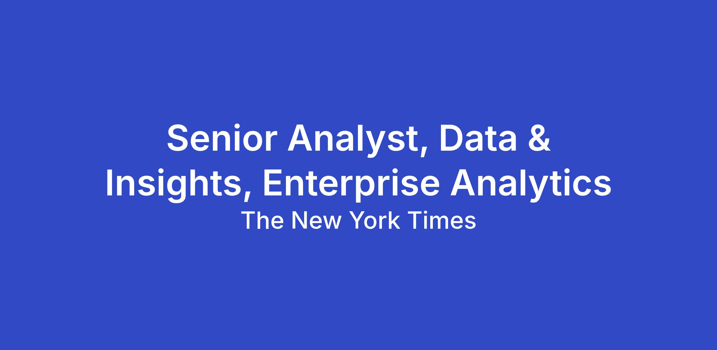 The New York Times is looking for a Senior Analyst to join our Enterprise Analytics Team within the Data and Insights Group (DIG).