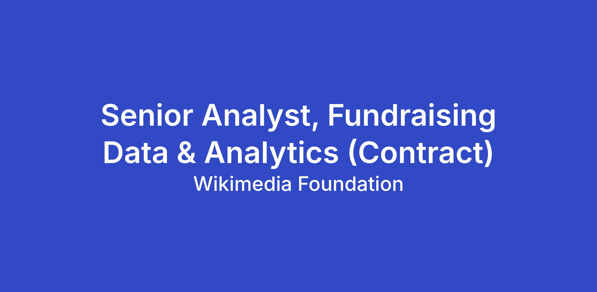 The fundraising team at the Wikimedia Foundation conducts worldwide campaigns across nearly 40 countries and 20 languages, collecting donations to support the Wikimedia Foundation’s mission to empower and engage people around the world with free knowledge. The Fundraising Operations team has an opening for a senior data analyst on our team, to support data-driven decisions to improve the effectiveness of our fundraising strategies, while staying true to our values of openness, transparency, and respect of user privacy. This role will be a full-time (40 hours/week) contractor position.