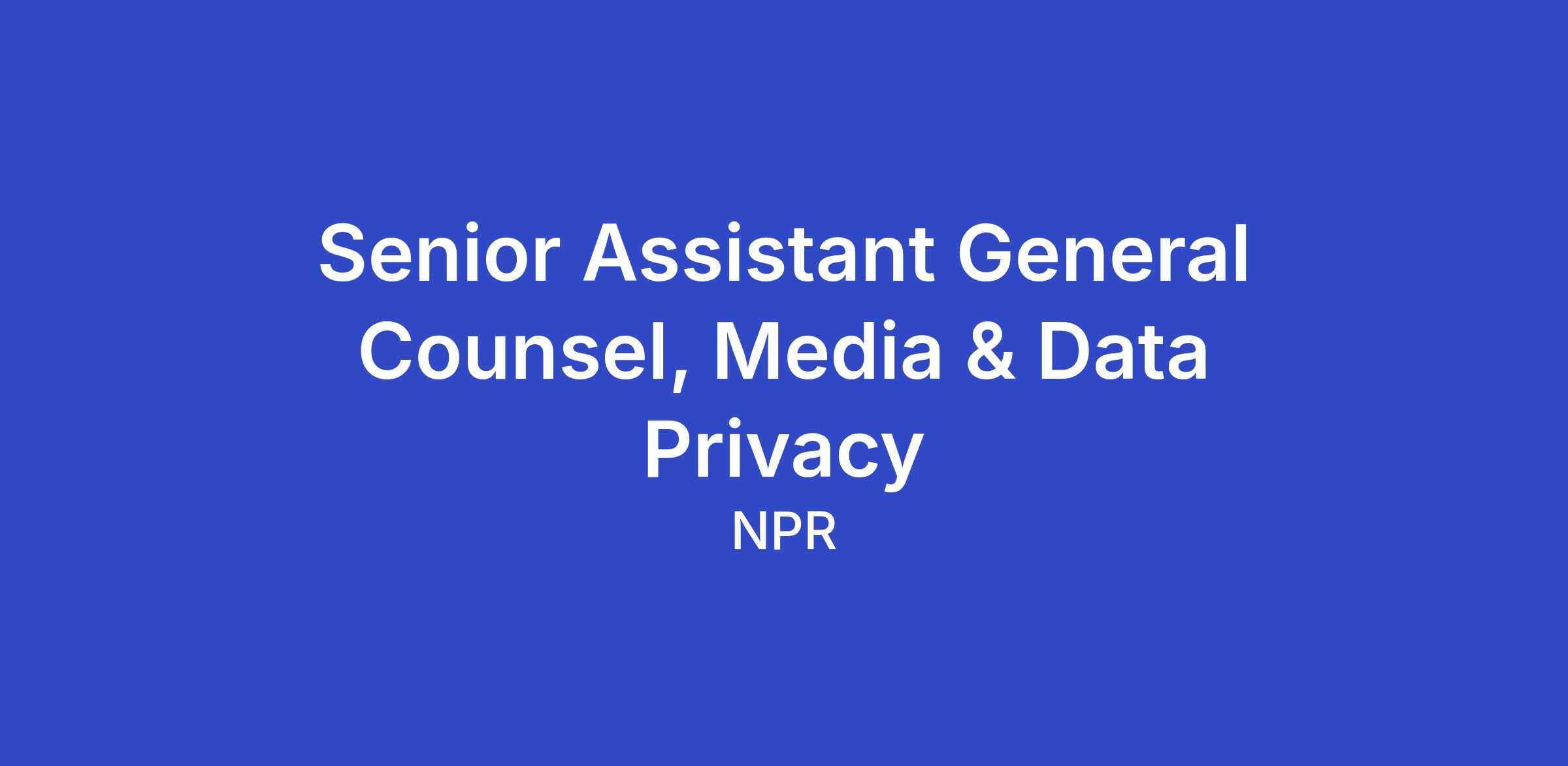 NPR’s Office of the General Counsel seeks a highly skilled and collaborative attorney to serve as Senior Assistant General Counsel, Media Law & Data Privacy. This unique senior-level role bridges two critical areas of the organization, with a primary focus on supporting our award-winning newsroom and a significant secondary focus on global data privacy compliance. Reporting to the Deputy General Counsel (Head of Media Law & Distribution Rights), the successful candidate will provide high-level legal guidance and strategic oversight to ensure NPR’s content and data practices remain industry-leading and ethically grounded.