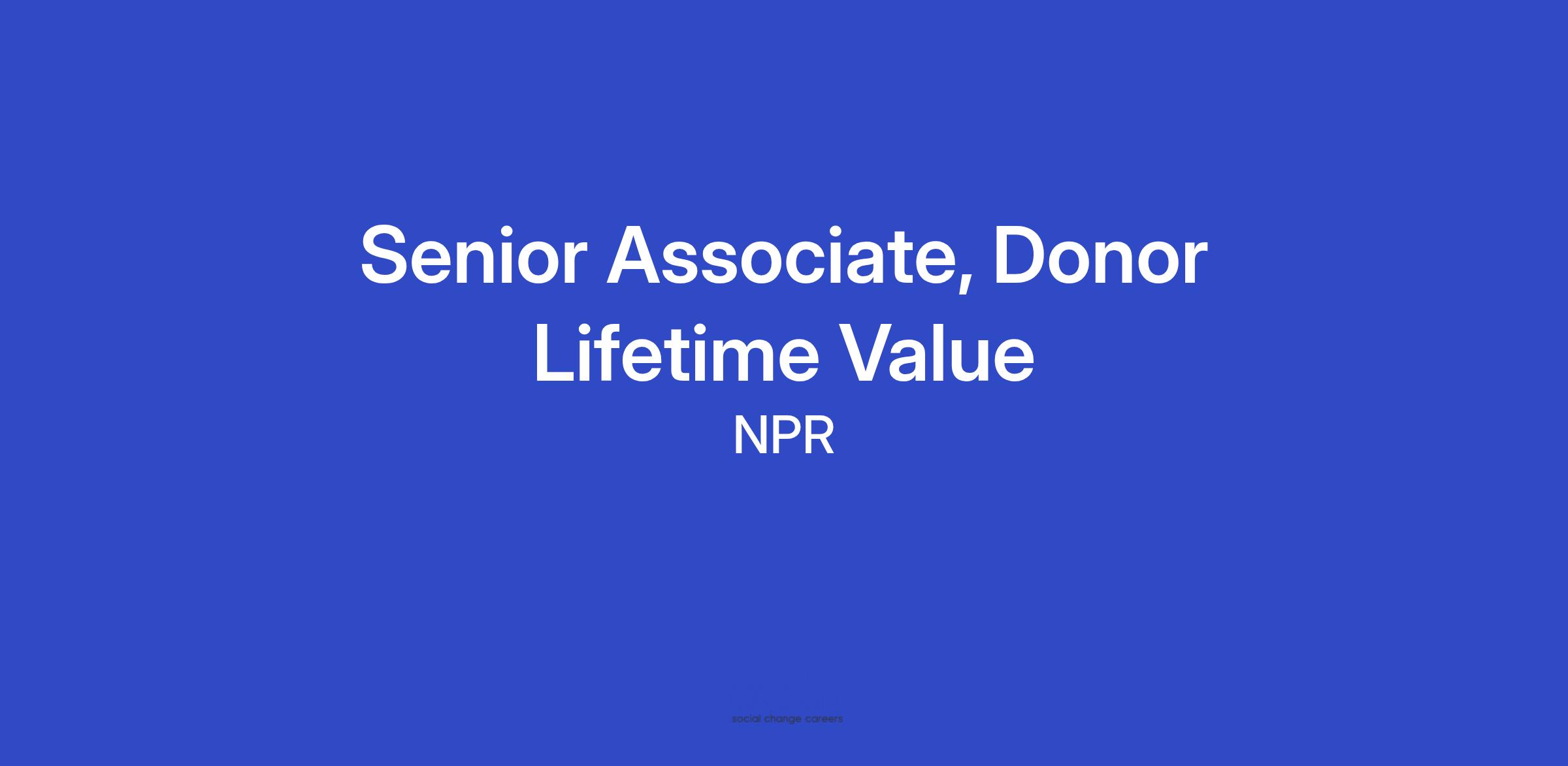 NPR is seeking a highly organized, energetic, and data-driven fundraising specialist to pursue philanthropic support for NPR’s mission. Reporting to the Senior Manager, Donor Lifetime Value, the Senior Associate will support the execution of initiatives that increase lifetime value from current donors giving up to $1K a year to NPR and all giving levels for the NPR Network. This work will benefit both NPR and its richly varied network of NPR Member Station partners.