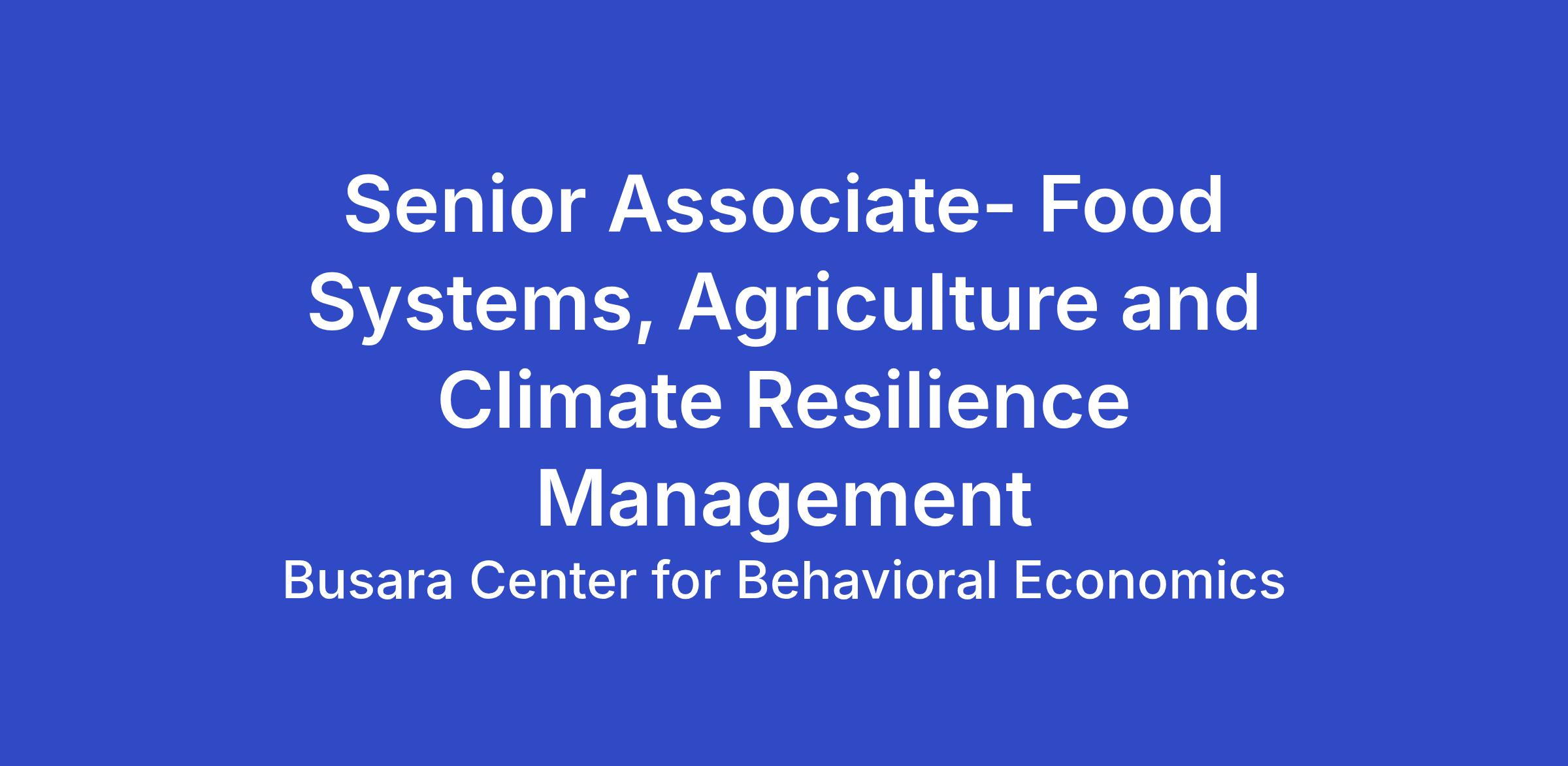 - 5–8 years of experience in research, advisory, or program design roles with a meaningful focus on food systems, agriculture, or climate resilience in sub-Saharan Africa or comparable contexts.
