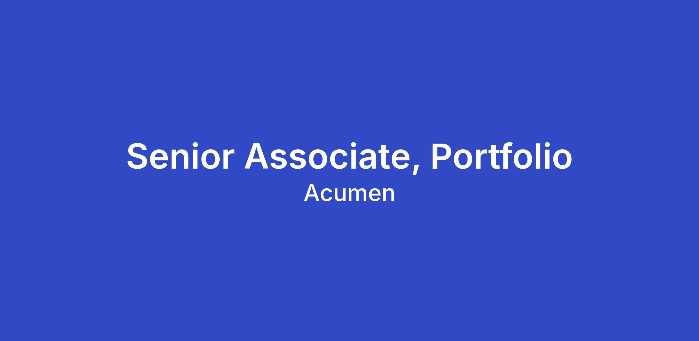 Acumen Latin America is seeking a Senior Associate to join our Bogotá-based Portfolio team. We are looking for a thoughtful, entrepreneurial, and mission-driven professional with 4–6 years of relevant experience and a strong commitment to tackling poverty and inequality in Latin America.