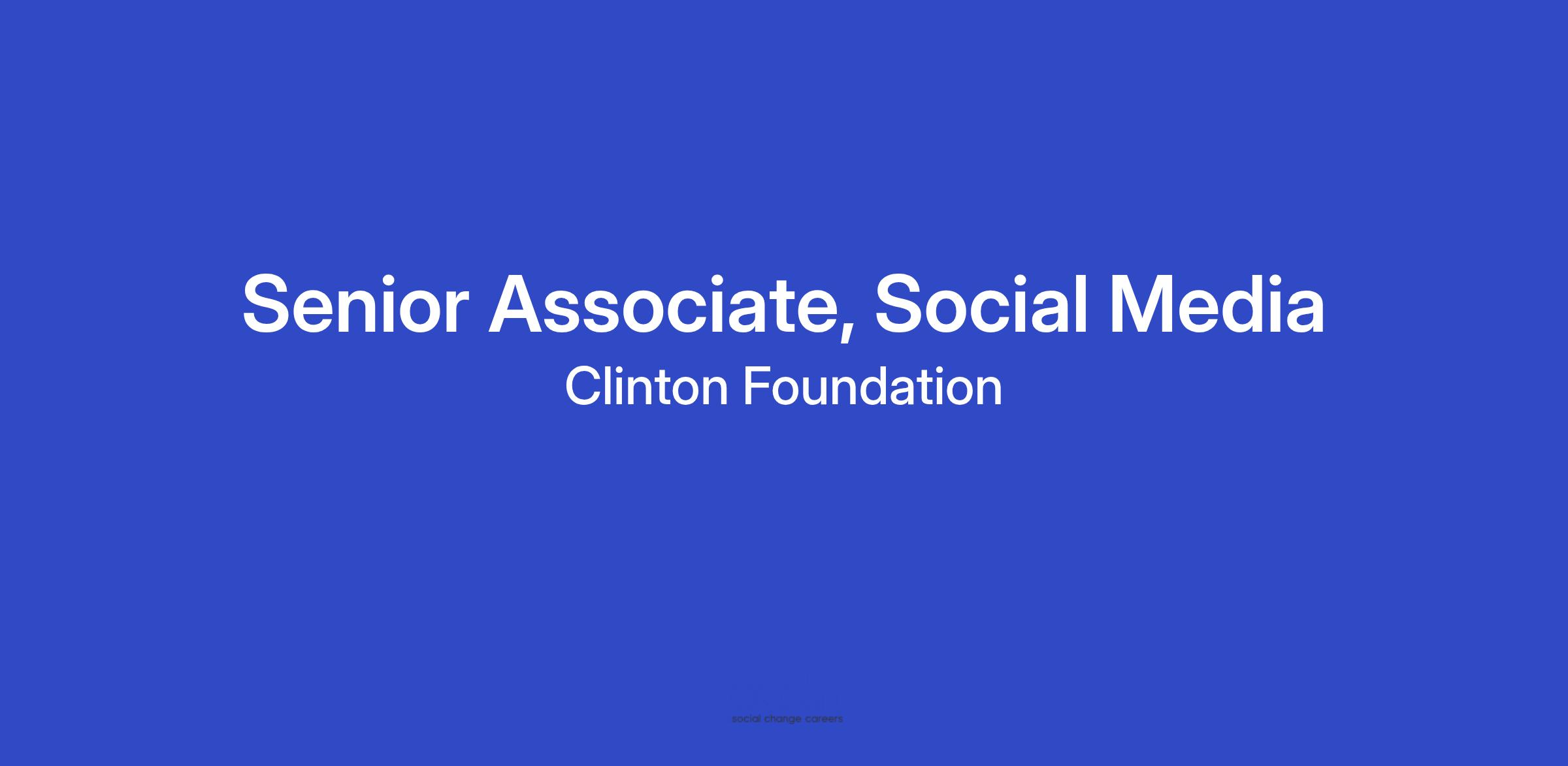 The Senior Associate, Social Media supports the Clinton Foundation’s presence across social platforms — helping to drive reach, relevance, and revenue to advance the organization’s mission. Reporting to the Director of Brand & Digital Marketing, this role helps develop compelling, brand-aligned content that showcases the Foundation’s work, leaders, and partners while cultivating an engaged online community.
