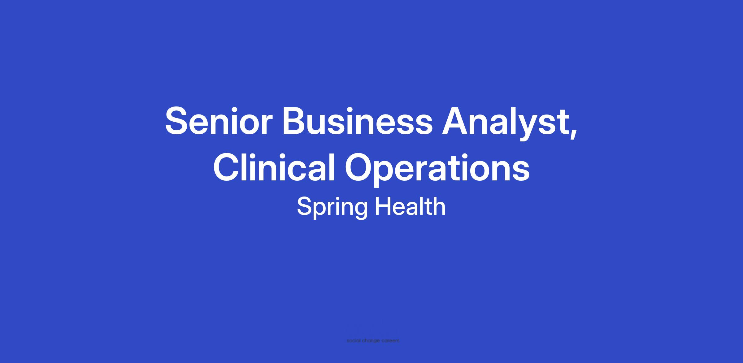 Reporting to the Director of Clinical Operations & Strategy, the Sr. Business Analyst, Clinical Operations will help drive operational excellence and impact at scale. In this role, you will support the strategic and operational priorities of our Clinical Operations team by owning advanced analytics, forecasting, and performance measurement to drive efficiency and quality across our care delivery operations. You’ll develop insights that guide strategic decisions, improve clinical frontline team utilization, and enhance the member experience. You’ll collaborate closely with clinical leaders and cross-functional teams including Business Intelligence, Quality, Workforce Planning, and Product to turn data into actionable insights and help power Spring Health’s mission of eliminating every barrier to mental healthcare.