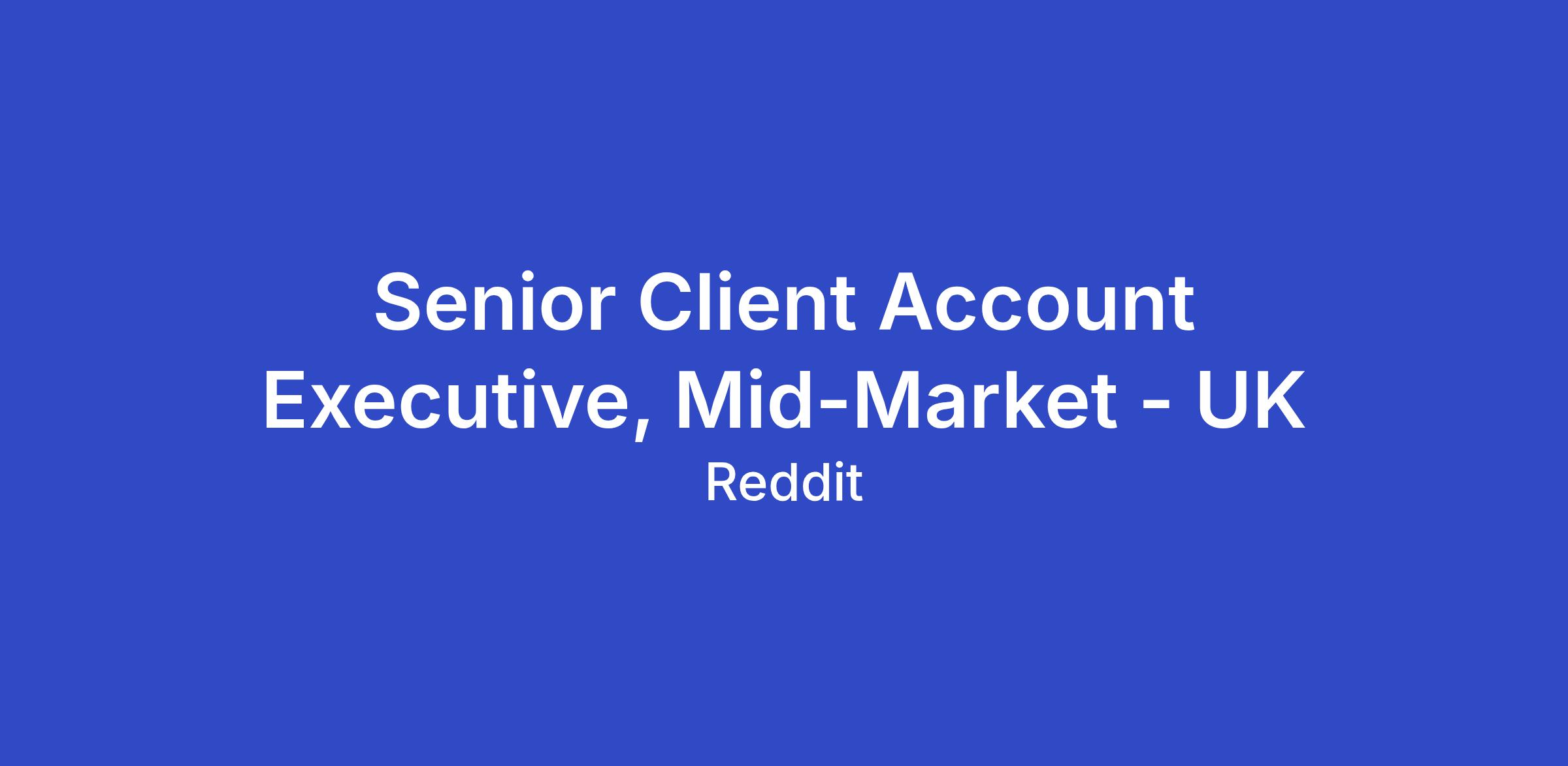 As a Senior Client Account Executive, you will have end-to-end ownership to grow and retain your book of business. You will drive strategic conversations, guide campaign execution, and partner cross-functionally to help advertisers succeed on Reddit. You'll work closely with a team of Account Strategists to scale your impact across a dedicated book of business. The ideal candidate thrives in a fast-paced, consultative environment and enjoys taking ownership, building deep client relationships, and turning insights into action.