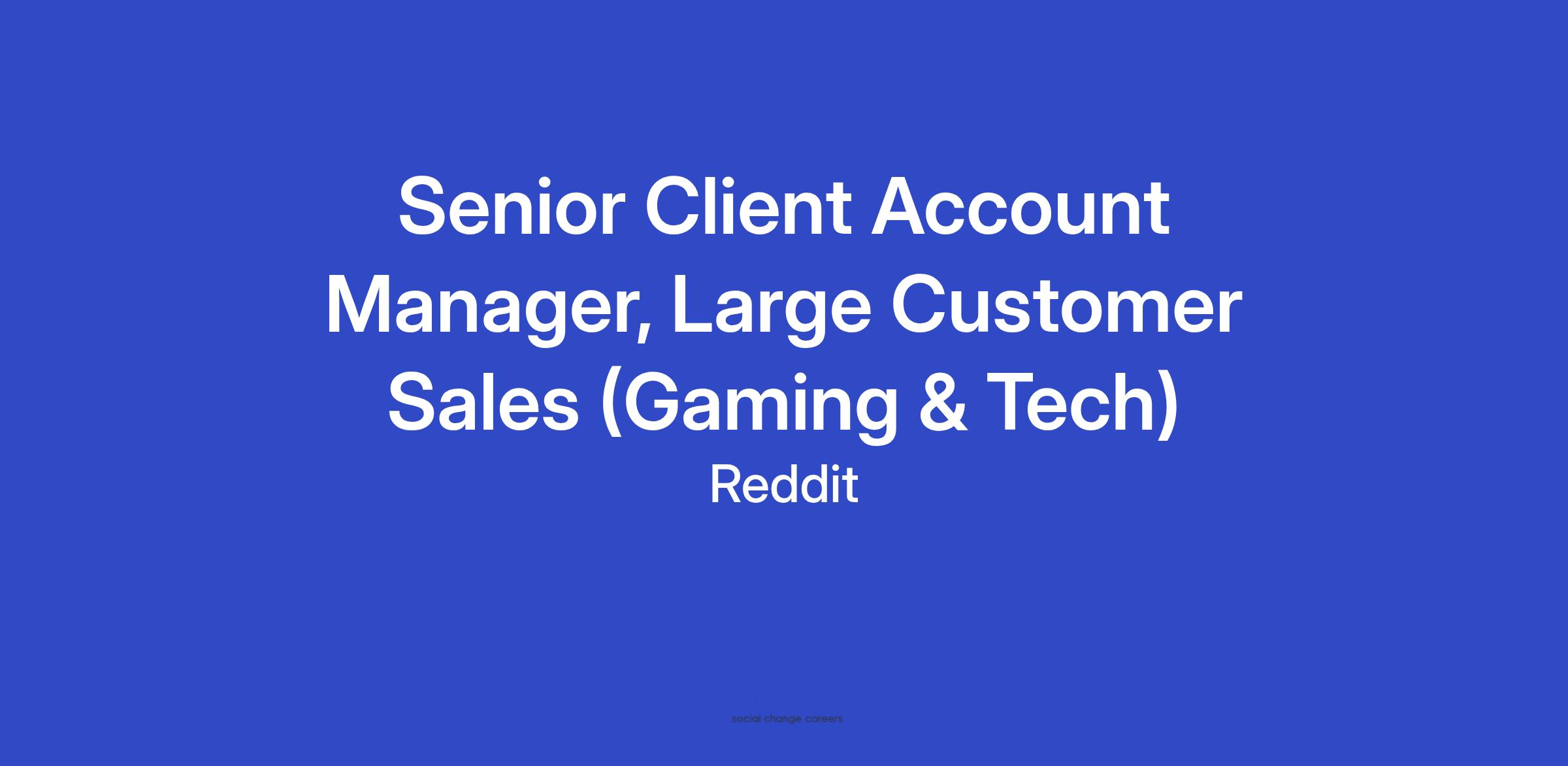 We are looking for a Senior Client Account Manager for the Gaming & Tech vertical of our Large Customer Sales team. This person will closely collaborate with a Client Partner on campaign execution and optimizations to help agencies and advertisers achieve their marketing objectives on the fast-growing Reddit platform.