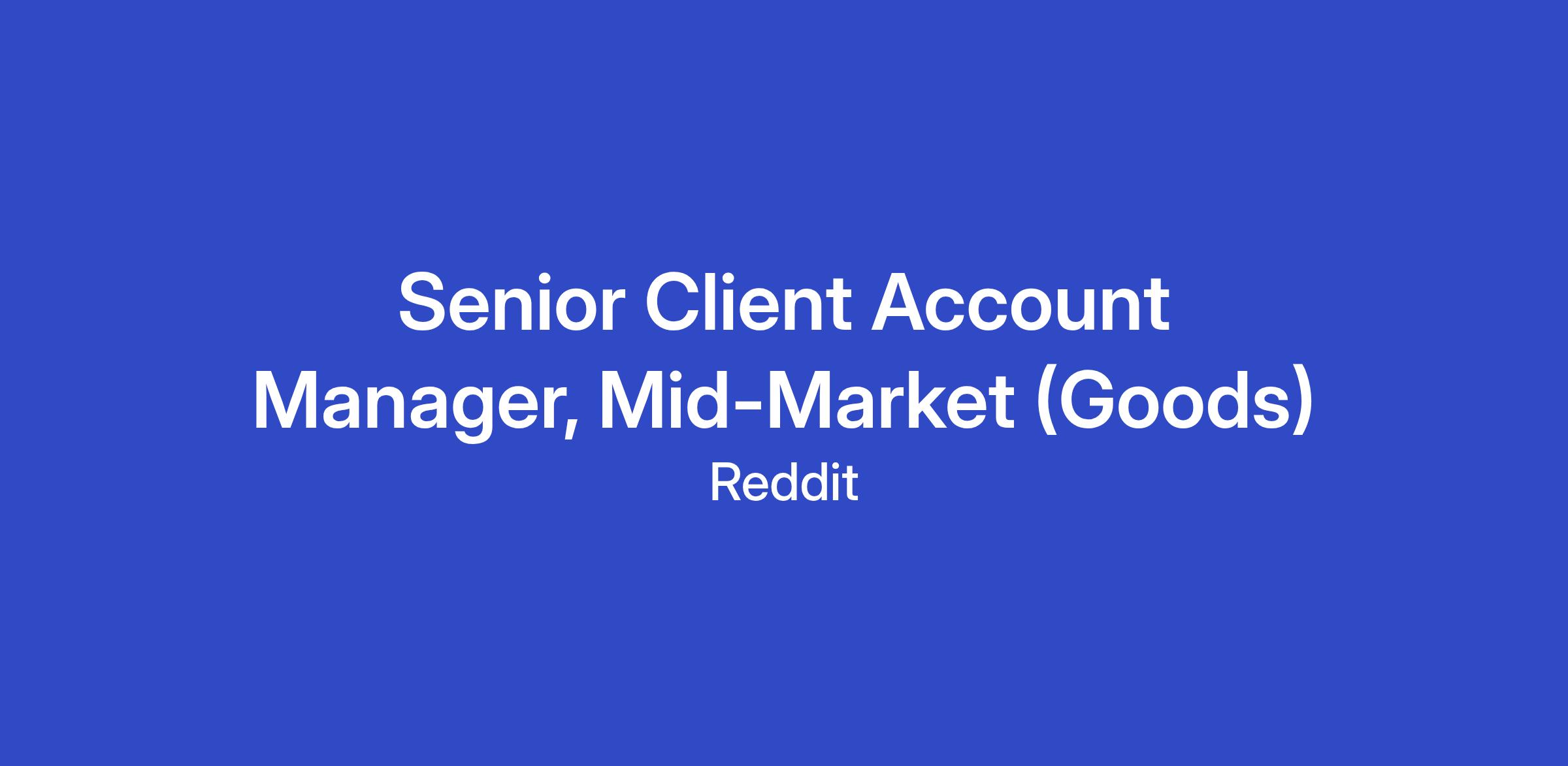 We're looking for a sharp, positive and motivated self-starter to join our SF Mid-Market Sales team. As a Senior Client Account Manager, you will closely collaborate with your Client Partner on campaign execution and optimizations to help agencies and advertisers achieve their marketing objectives on the fast-growing Reddit platform.