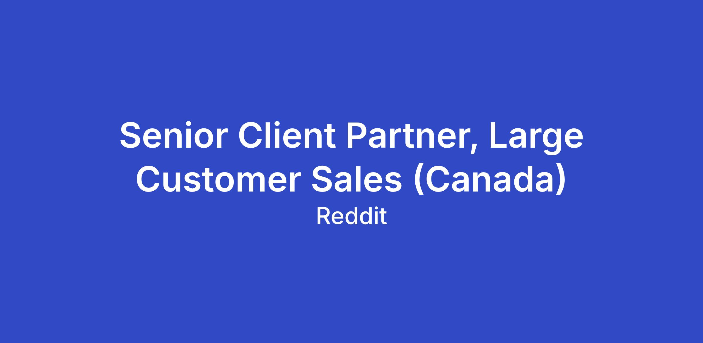 We're looking for an experienced Senior Client Partner to join the Financial Services vertical of our Large Customer Sales team. In this role, you will lead the strategic direction of our partners' presence on Reddit, securing long-term investment by ensuring some of Canada's largest brands and agencies exceed their business objectives through Reddit’s advertising suite.