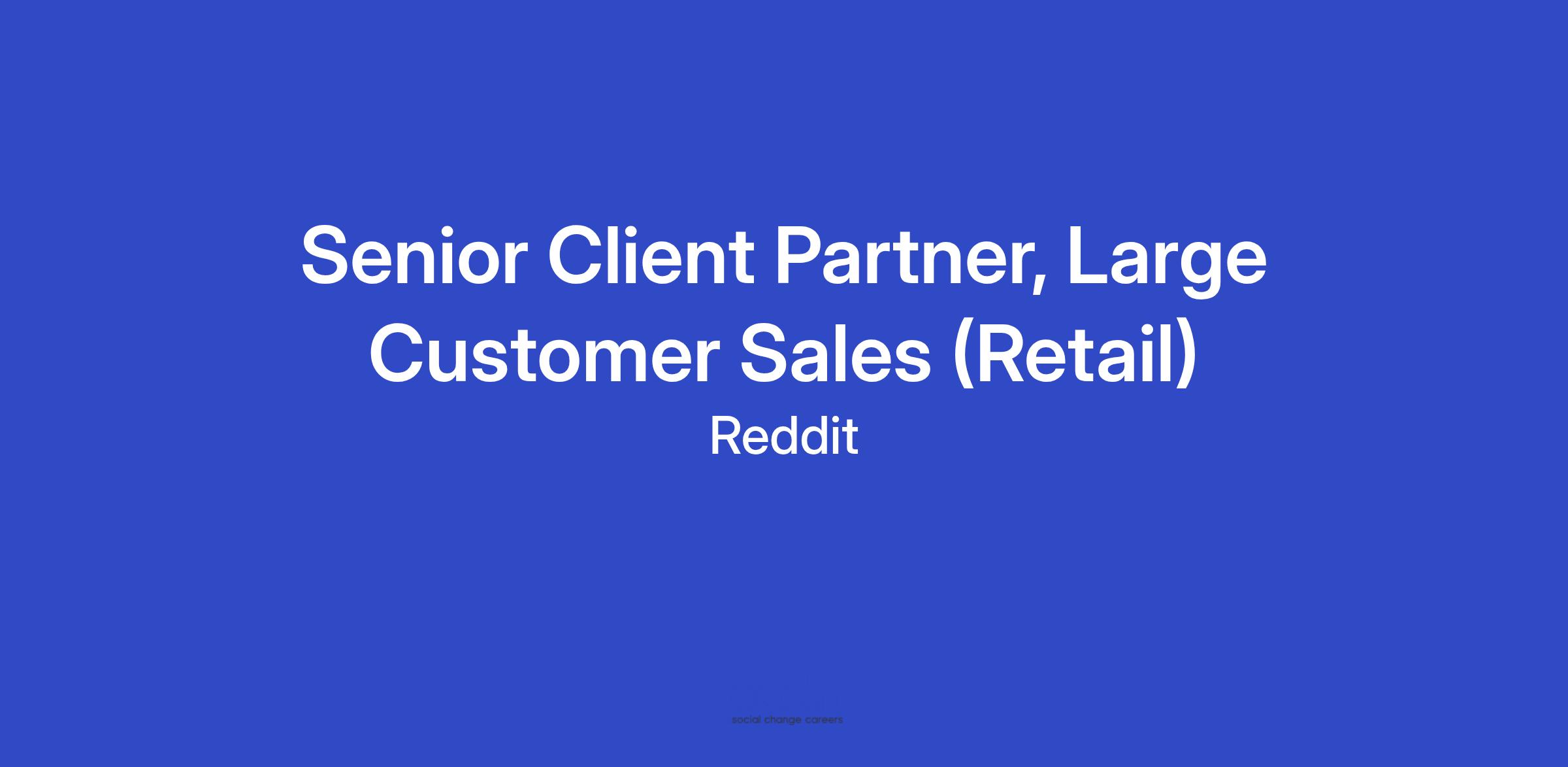 We're looking for an experienced seller to join the Retail vertical of our Large Customer Sales team. As a Senior Client Partner, you will be responsible for forming relationships with key brands and agencies while ensuring they meet their business objectives using Reddit's advertising suite.