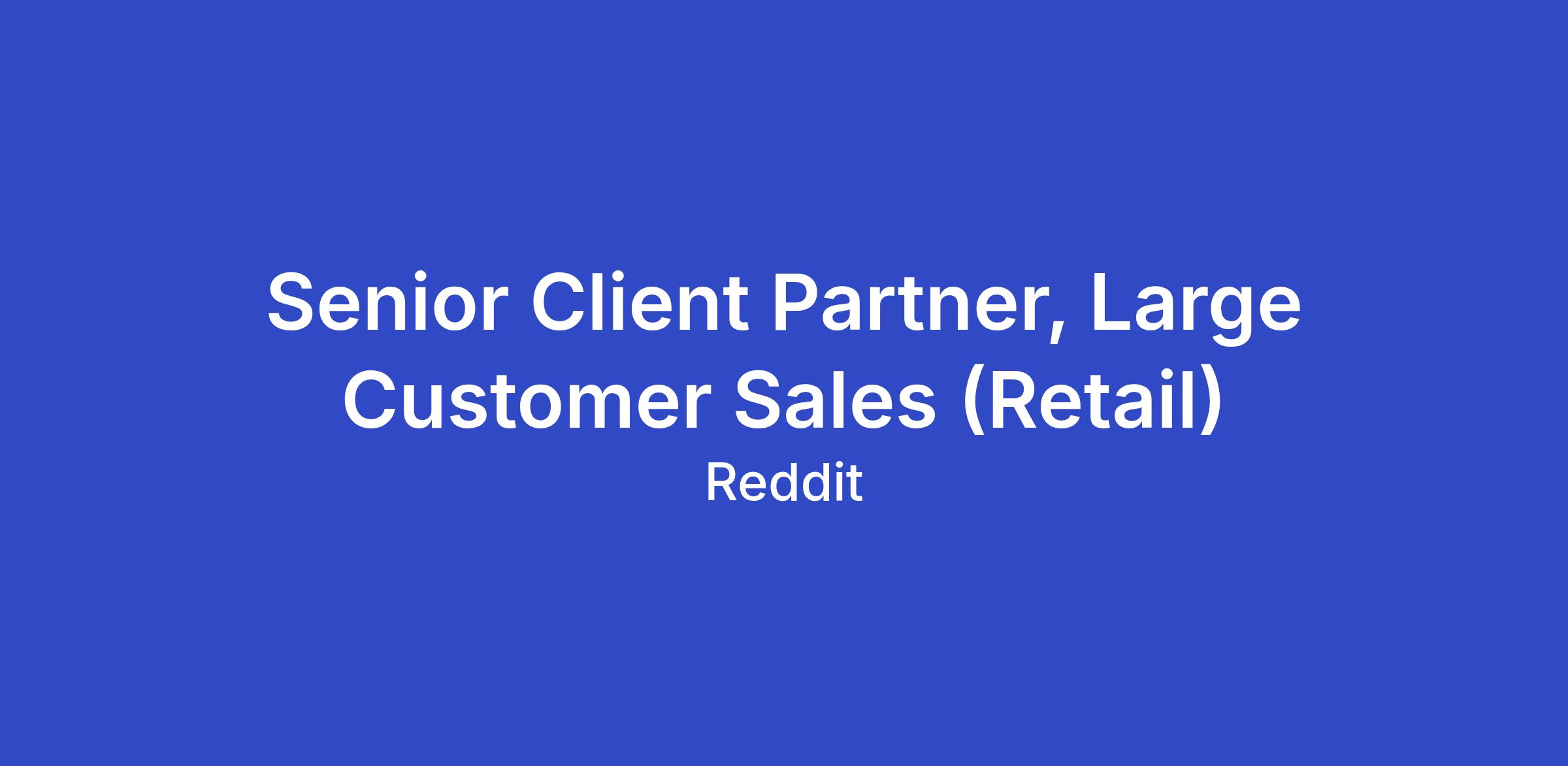 We're looking for an experienced seller to join the Retail vertical of our Large Customer Sales team. As a Senior Client Partner, you will be responsible for forming relationships with key brands and agencies while ensuring they meet their business objectives using Reddit's advertising suite.