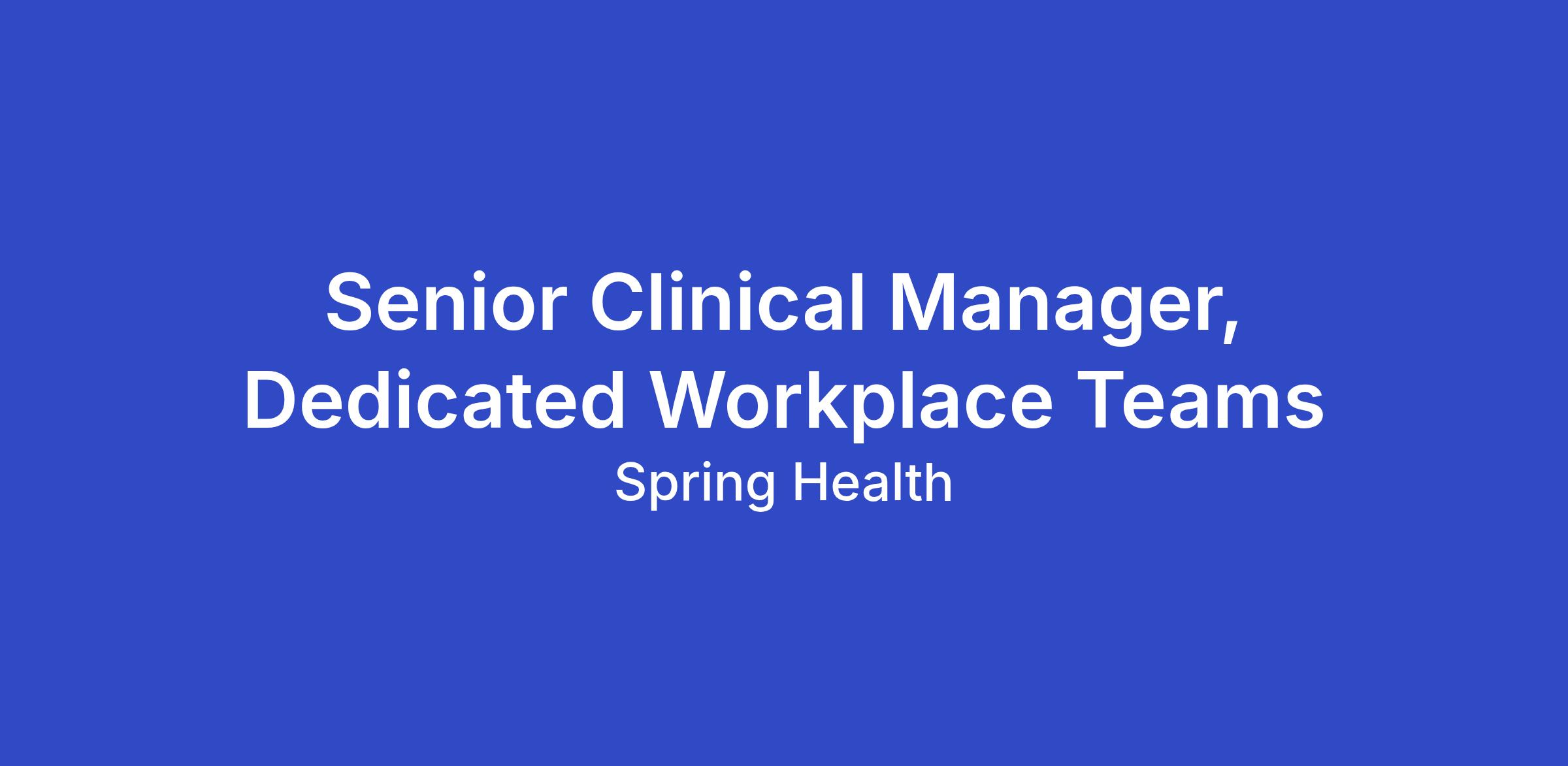 As the Senior Clinical Manager (Dedicated Workplace Teams), you'll lead and inspire a high-performing team of clinical managers and clinicians who provide on-site services at our employer partners' workplaces. In this remote role, you'll be responsible for the operational health and quality of your assigned programs, empowering your team to deliver exceptional mental health services that have a meaningful impact on both employees and organizations. You'll partner closely with internal and external stakeholders to drive program success. This position reports to the Director of Clinical Operations.